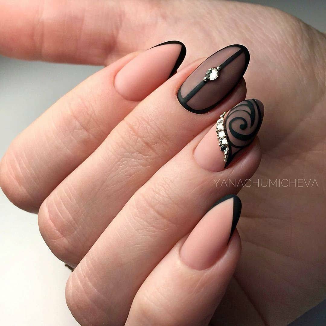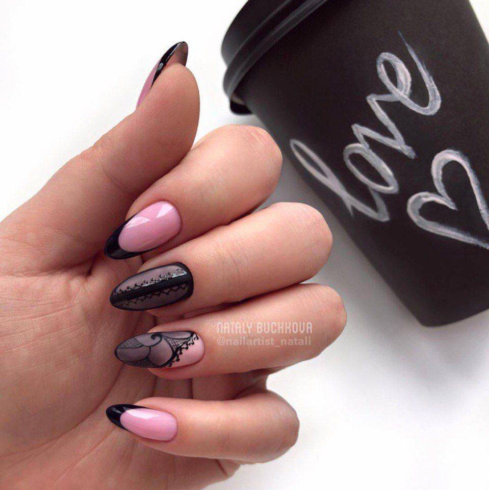 Полупрозрачный маникюр еще называют маникюр «вуаль». Он будто дымка или вуаль обволакивает ноготки, создает невероятно нежное и мягкое покрытие. Чаще всего маникюр «вуаль» создается в черном цвете и дополняется кружевным узором.