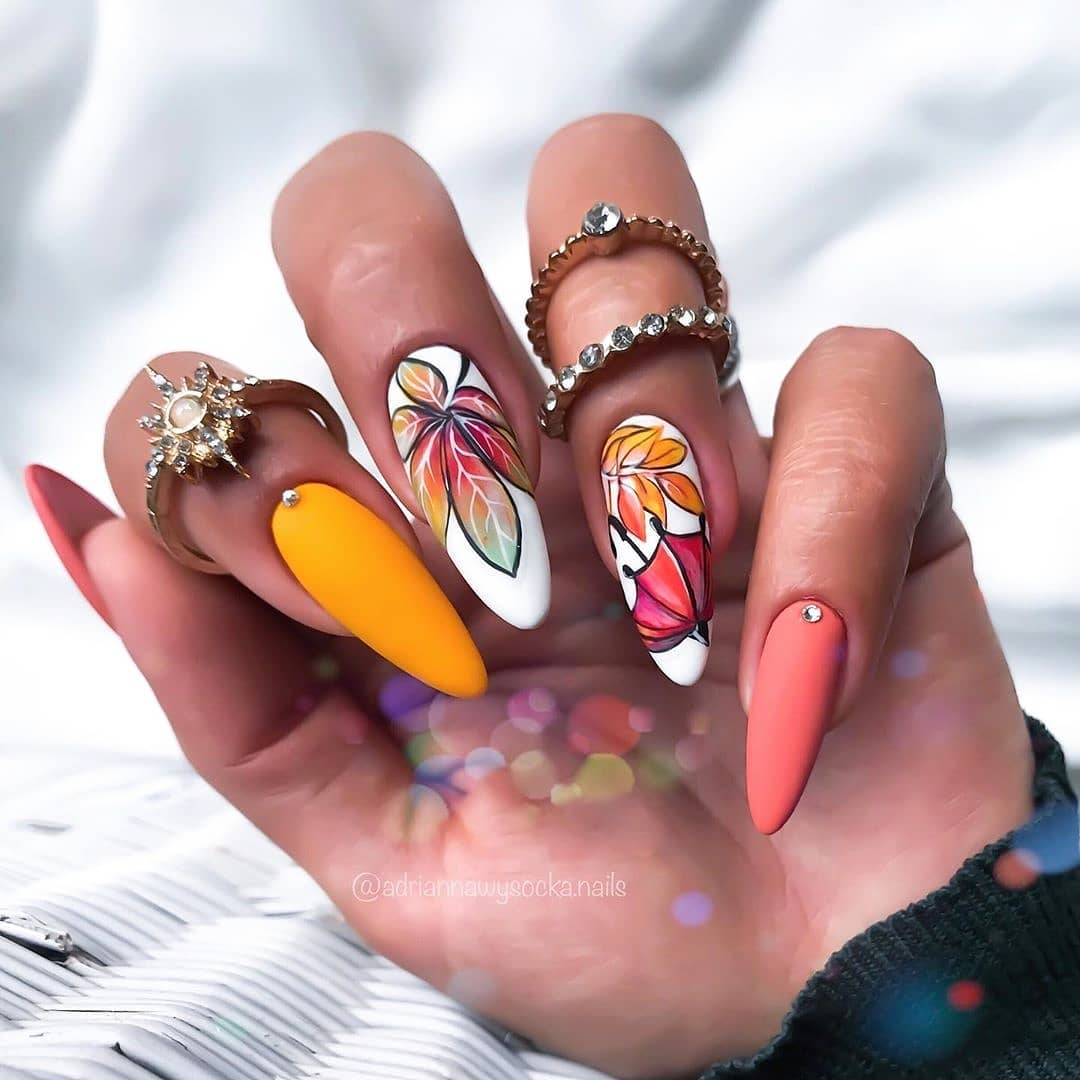 Создание осеннего модного маникюра процесс творческий, требующий вдохновения. Ниже представлена коллекция фото с разными вариантами дизайна ногтей на осеннюю тематику.