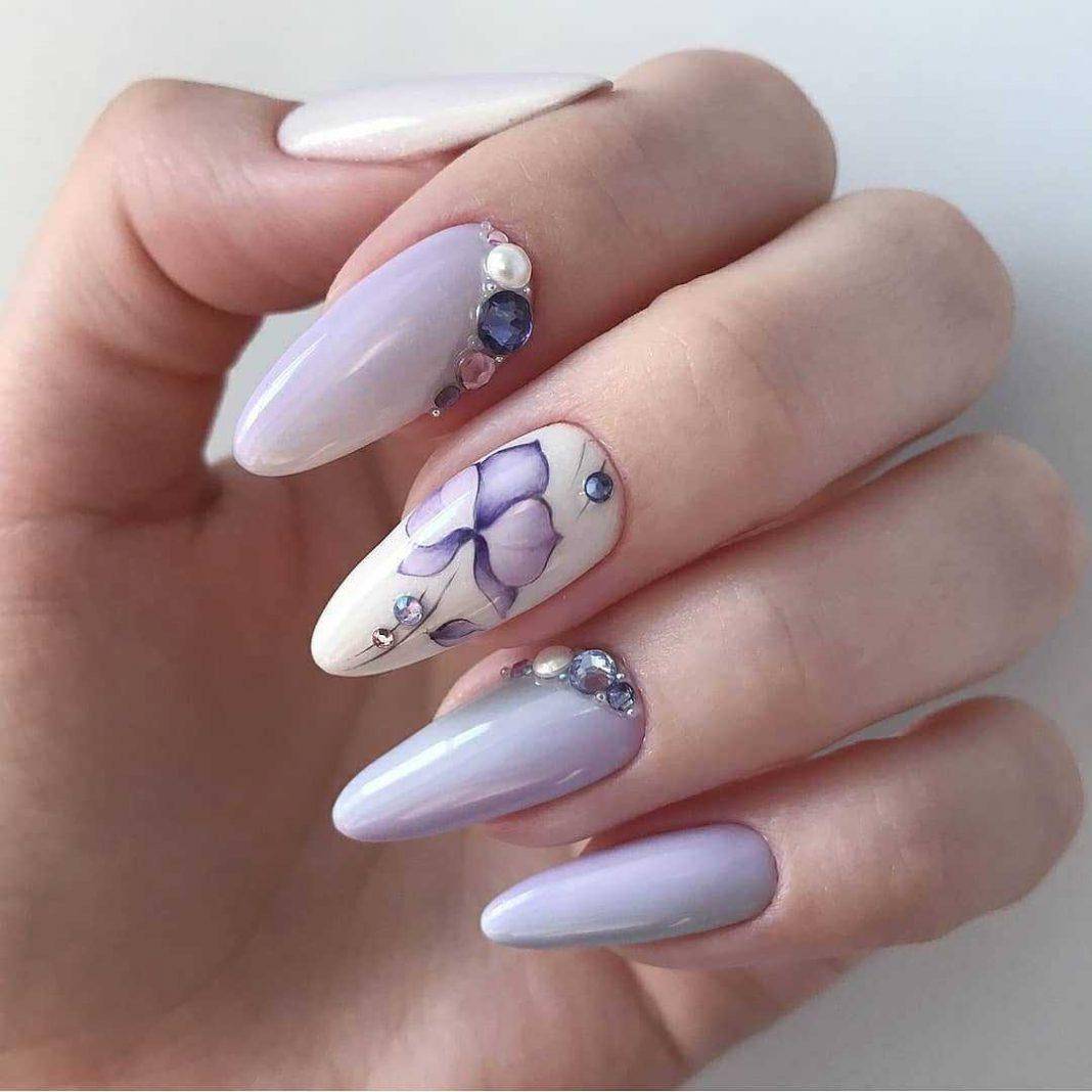 Для летнего маникюра с серым лаком можно использовать симпатичные рисунки в виде веточек, небольших цветов или узоров в виде кружева.