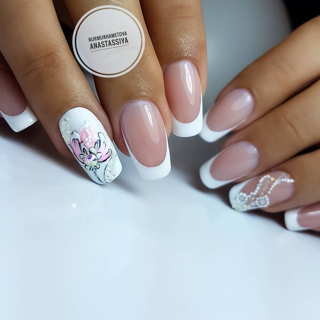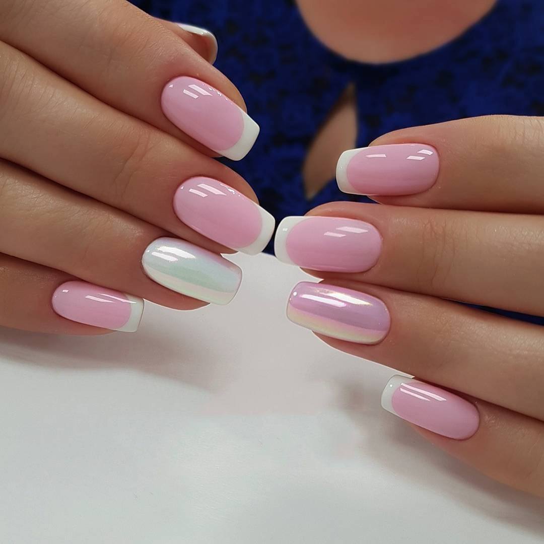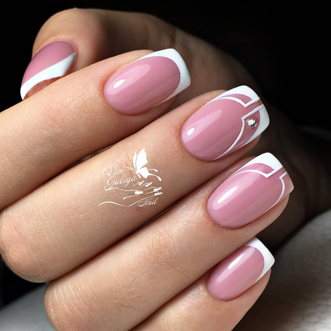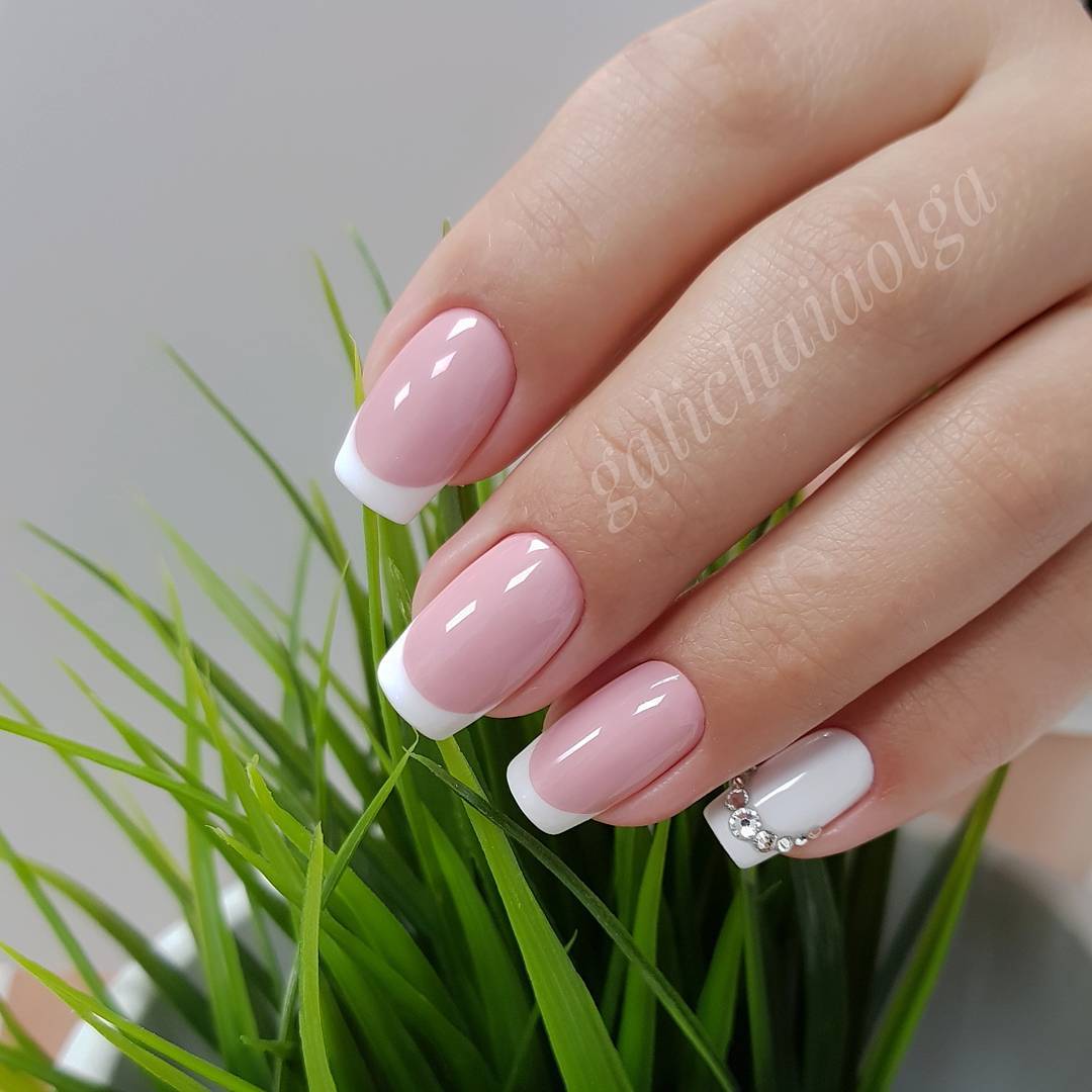 К классическому френчу относится дизайн в пастельных тонах, чаще всего в бело-розовом. Это удивительно красивое сочетание, которое изначально использовалось для выполнения французского дизайна.