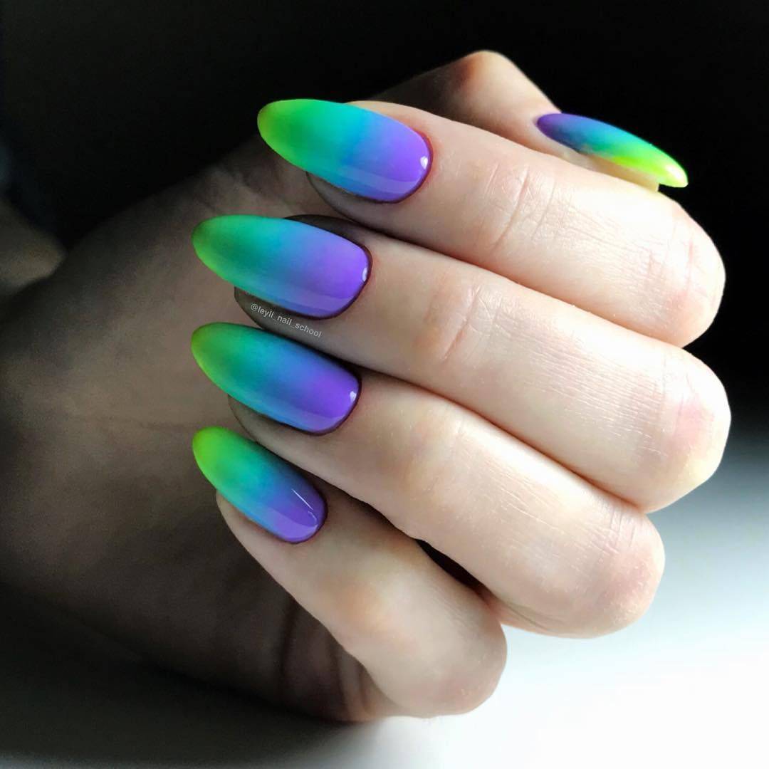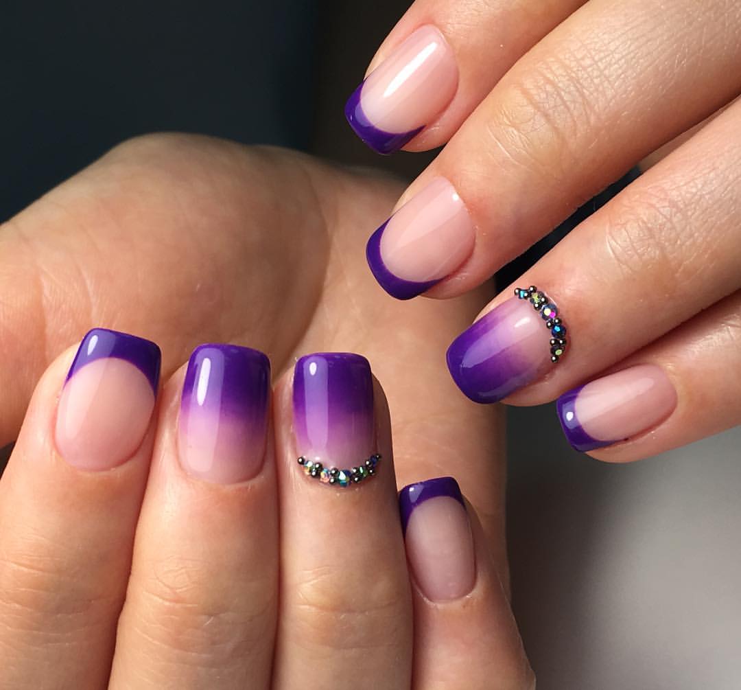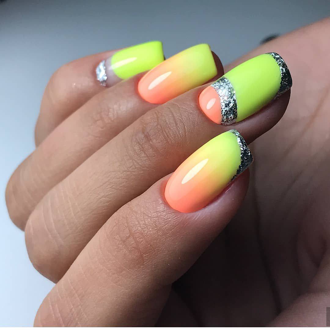 - декор края ногтевой пластины сочными оттенками с эффектом омбре