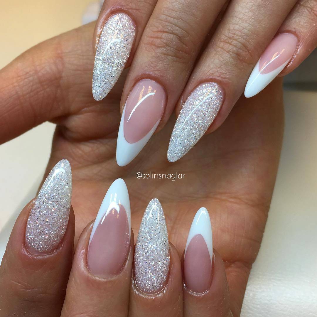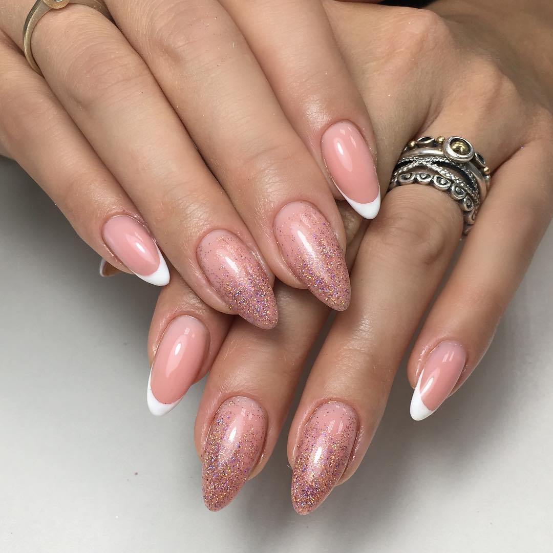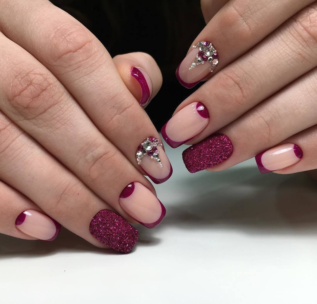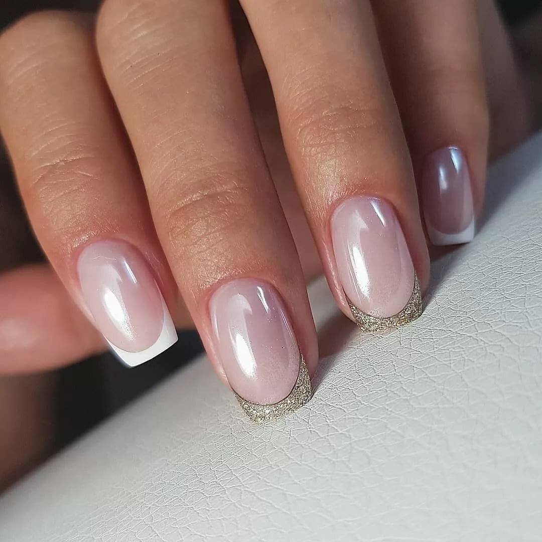 Модный французский маникюр с блестками 2020: актуальные идеи декора ногтей