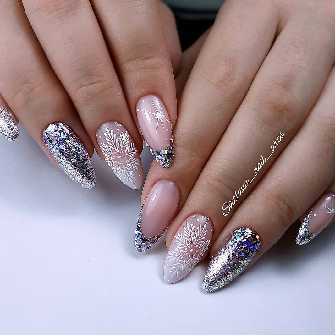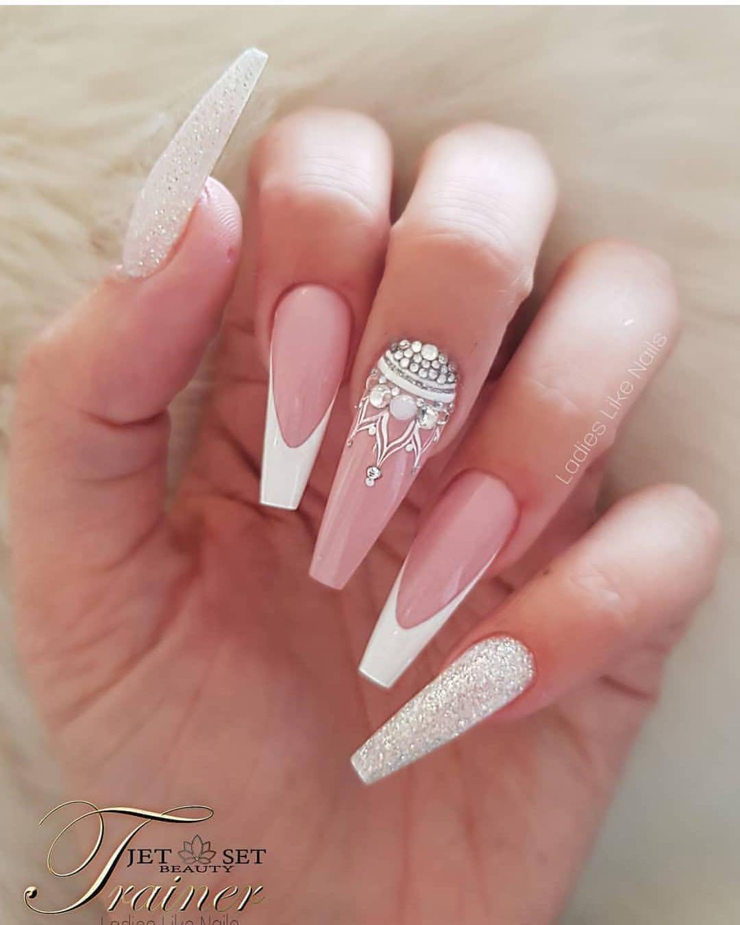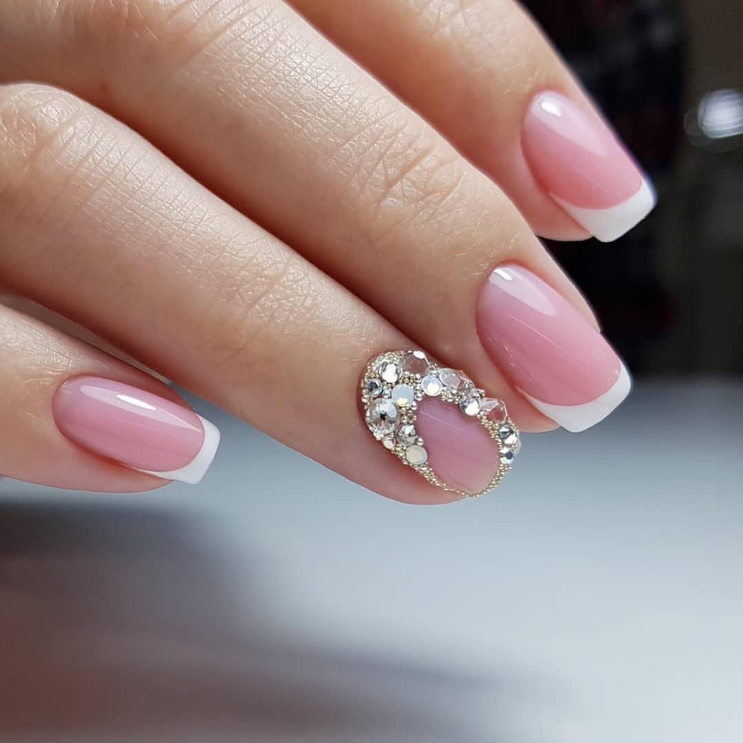 Модный французский маникюр с блестками 2020: актуальные идеи декора ногтей