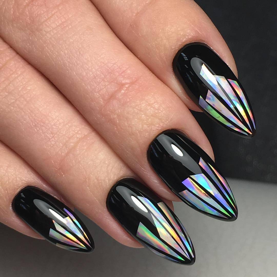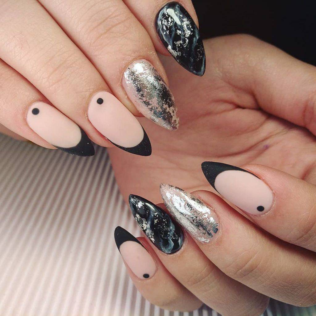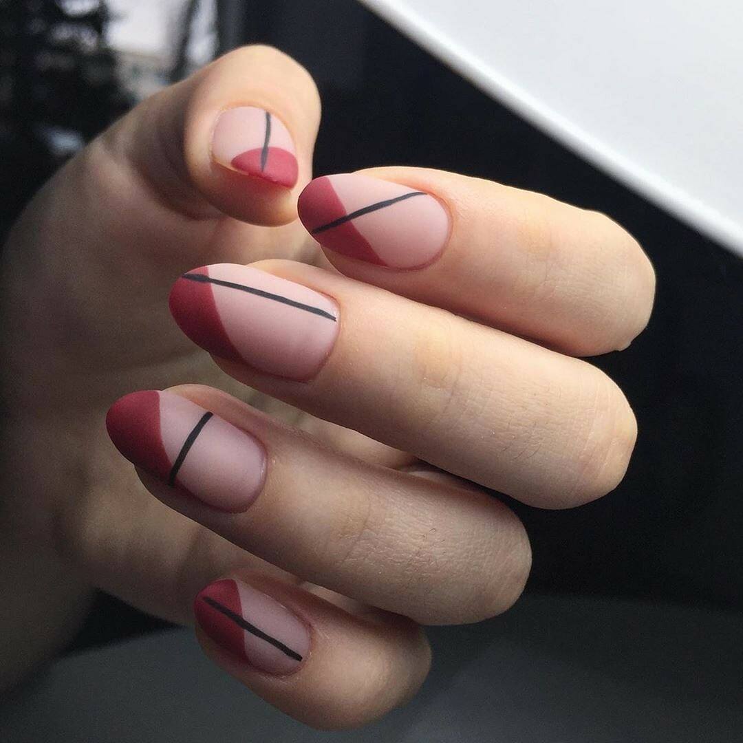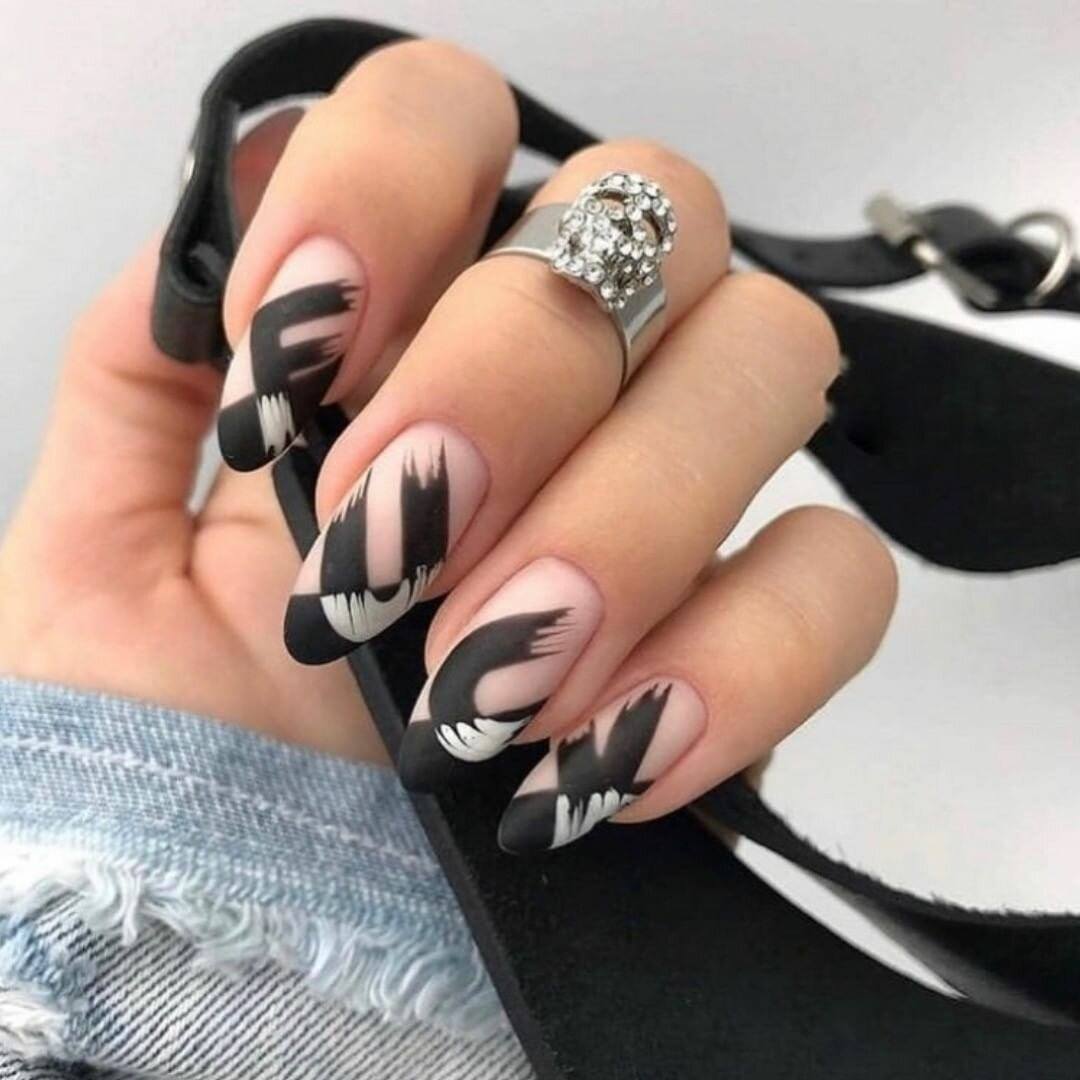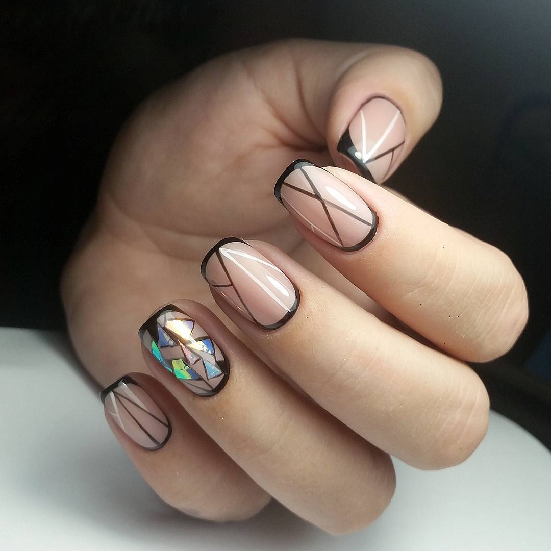Стильно выглядят нейл-арты с негативным пространством и оригинальным краем ногтя на каждом пальце. Такие нейл-арты чаще всего выполняются в технике негативное пространство, в матовом исполнении, с серебряными фольгированными полосами.
