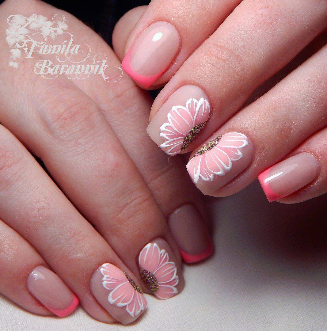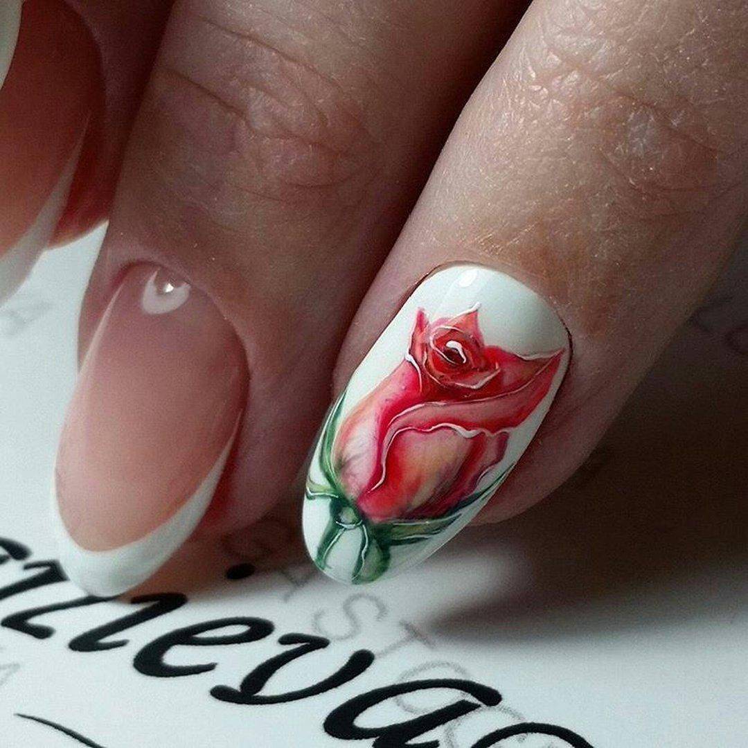 Рисунки на флористическую тематику всегда привлекали внимание прекрасных дам. В зависимости от вариаций и способов нанесения изображений мастера салонов создают маникюр на любой случай