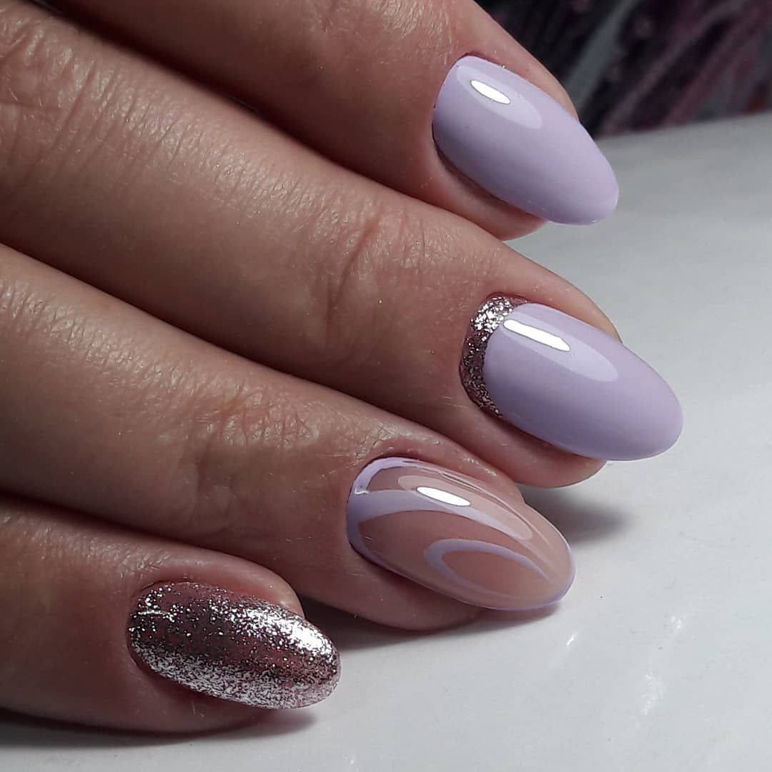 Для дизайна выбирайте нежный оттенок розового, желательно тона пыльная роза, лиловый, нежно-розовый и другие. В сочетание с серебряным глиттером они будут смотреть удивительно нежно и женственно.