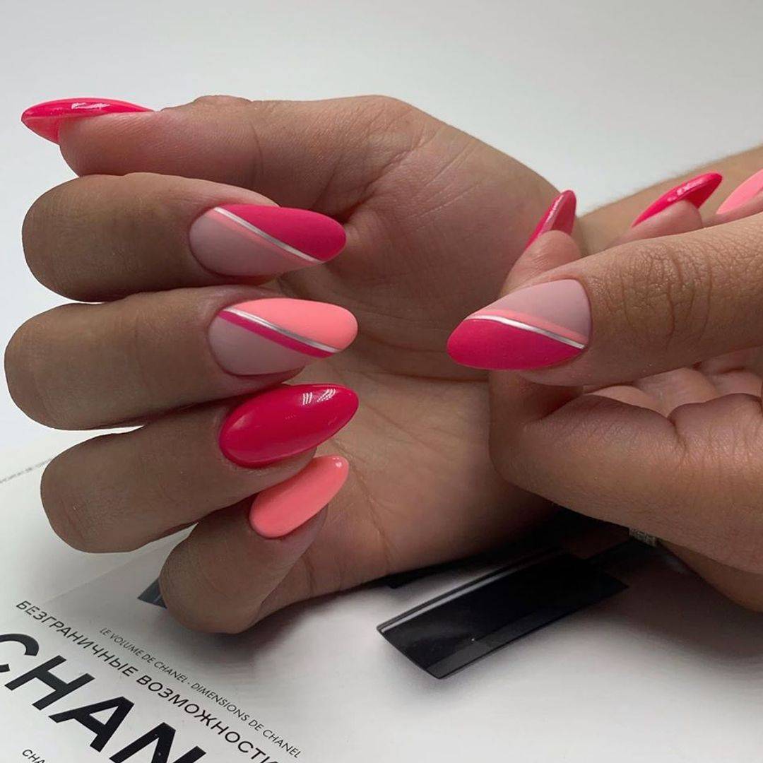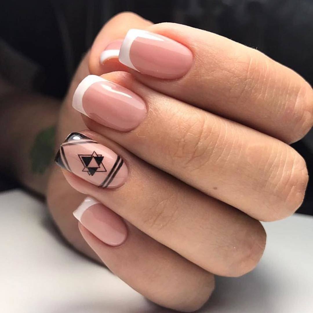 В 2021 году в тренде будет геометрический рисунок — линии, точки, формы и тому подобное. Геометрические узоры могут добавить уникальный и стильный вид вашему маникюру. Вы можете смешивать и сочетать рисунки на каждом ногте или добавлять акцент на одном-двух. Этот квадратный дизайн ногтей также идеально подходит, если вы не определились с выбором, поскольку каждый ноготь будет отличаться от других.