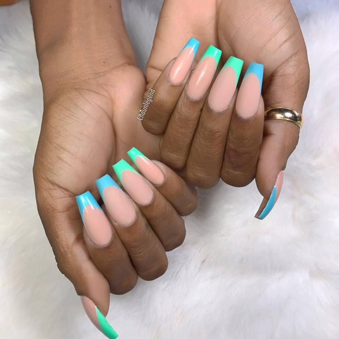 Что касается разноцветного френча, то это исключительно летняя затея. Маникюр выглядит невероятно ярко и привлекательно. Дизайн отлично гармонирует с яркими летними нарядами, заряжает своих обладательниц прекрасным настроением и позитивом.