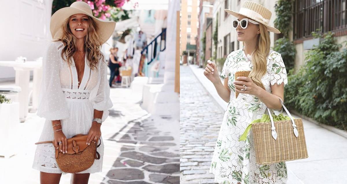 Дама в белой шляпе с широкими полями будет всегда в центре внимания. Вечерние и коктейльные платья, юбки мини или макси очень даже совместимы с этим аксессуаром. Такая шляпа может участвовать в самых разных стилях. Свободолюбивый стиль casual, строгий элегантный стиль или повседневный женственный образ прекрасно обрамит широкополая белоснежная шляпа. Белый цвет дружит практически со всеми цветами, поэтому составление образа не составит особого труда, но сколько в нем будет шарма и нежности!