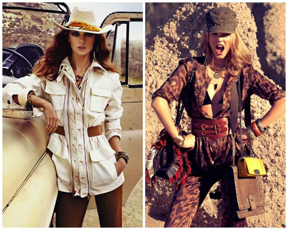 - К стилю сафари подойдут широкополые шляпы из легких материалов. Ключевая особенность – цвет хаки или близкий к нему. Лучше всего такие головные уборы сочетаются с платьями-рубашками, брюками с накладными карманами, легкими комбинезонами, блузами светлых тонов, аккуратными сандалиями.