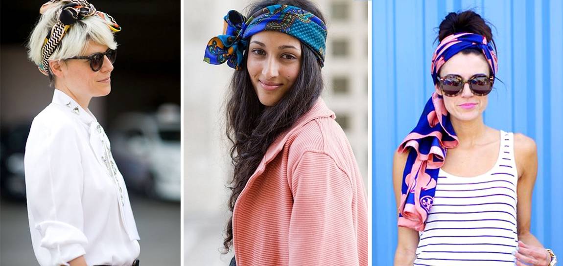 Если платок сформировать в виде тюрбана, то получится романтичный восточный образ. Такой головной убор сочетается со многими стилями