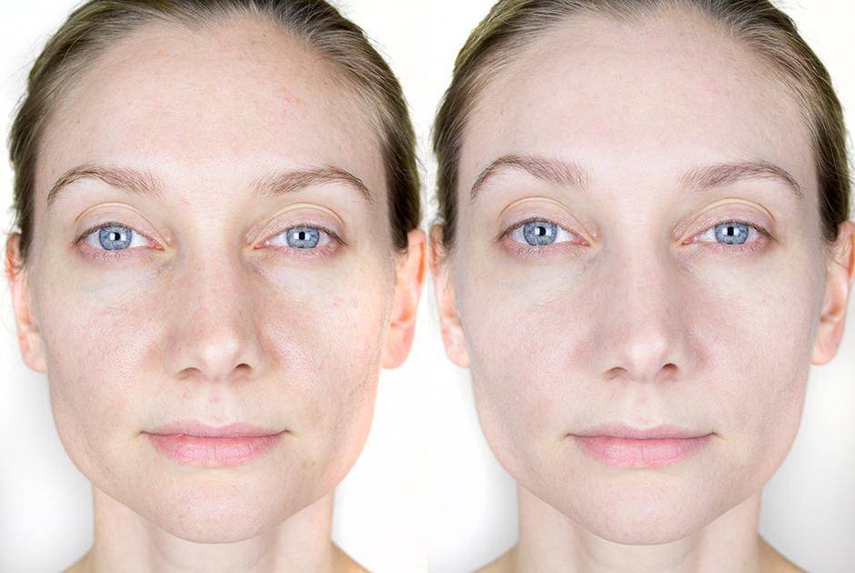 А ведь если правильно подобрать базу, то можно не только разгладить тон лица, но и оздоровить кожу. Для наглядного примера фото до и после применения тонального крема для сухой кожи.