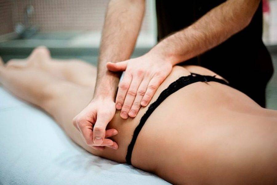 - щёткой, ребром ладони или костяшками пальцев медленно и неспешно выполняйте поглаживания ягодиц;
