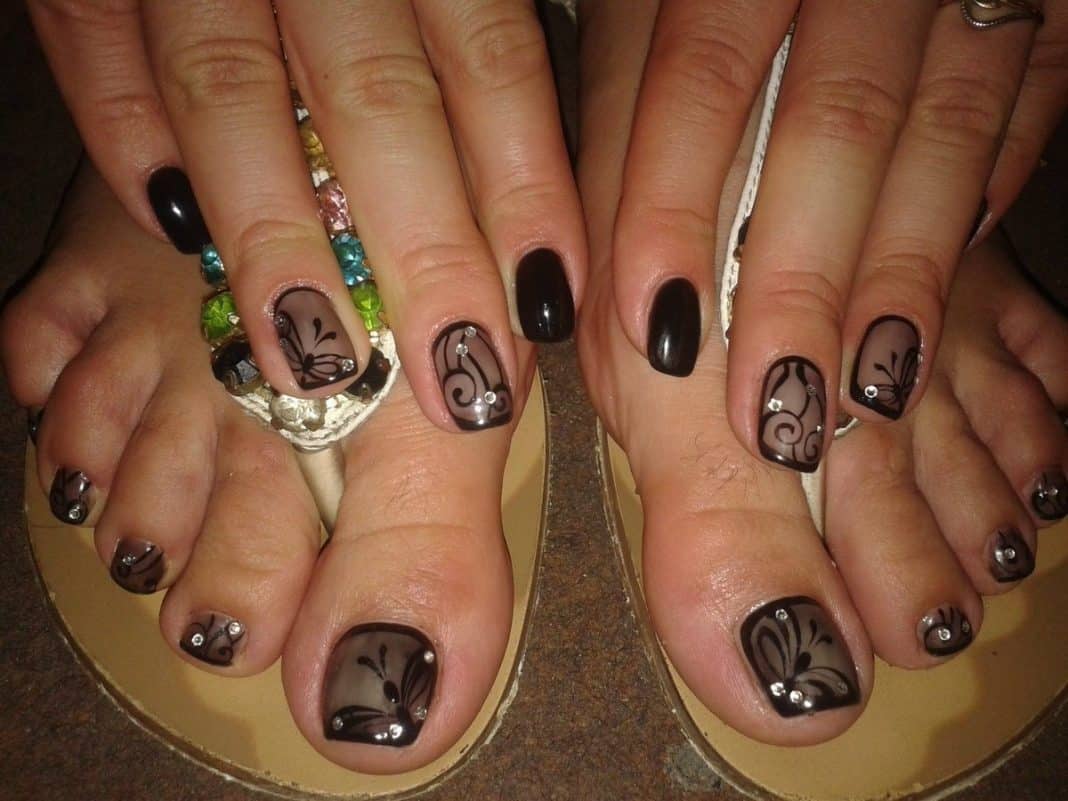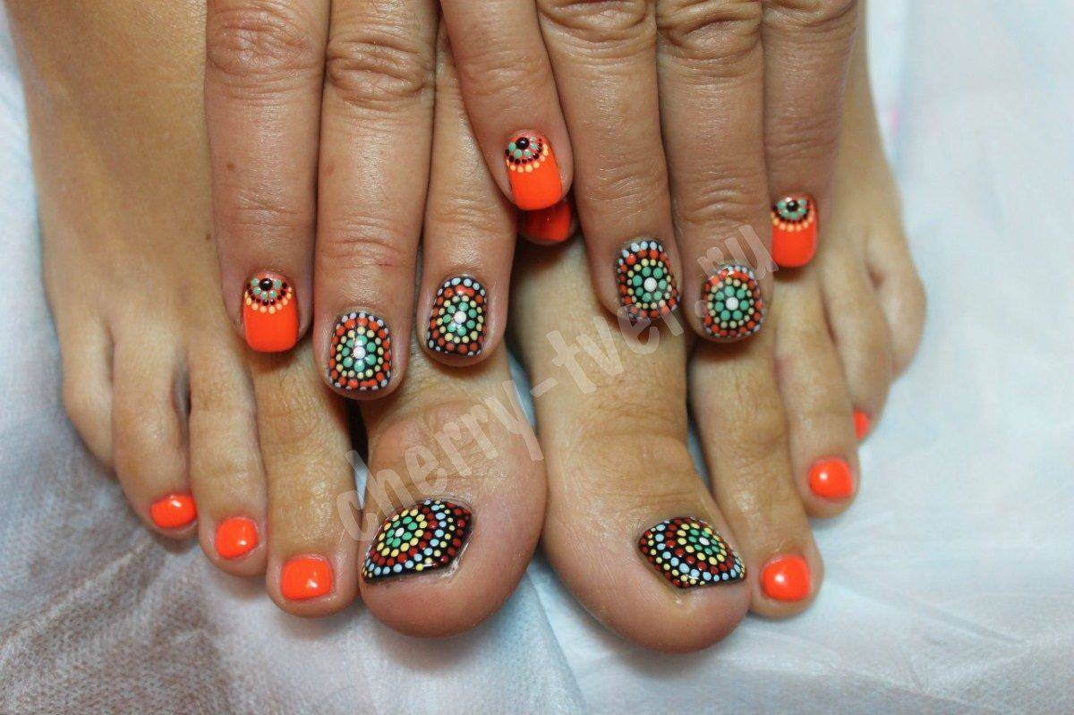 На ногах рисунки обычно наносятся на большой палец, а на руках росписью и рисунками дополняется один или два пальчика.