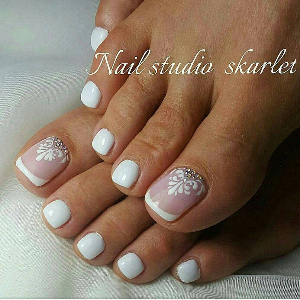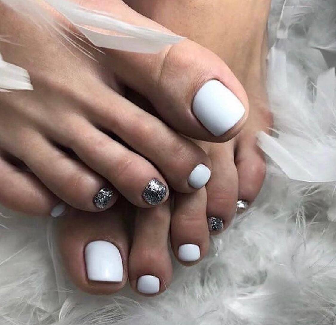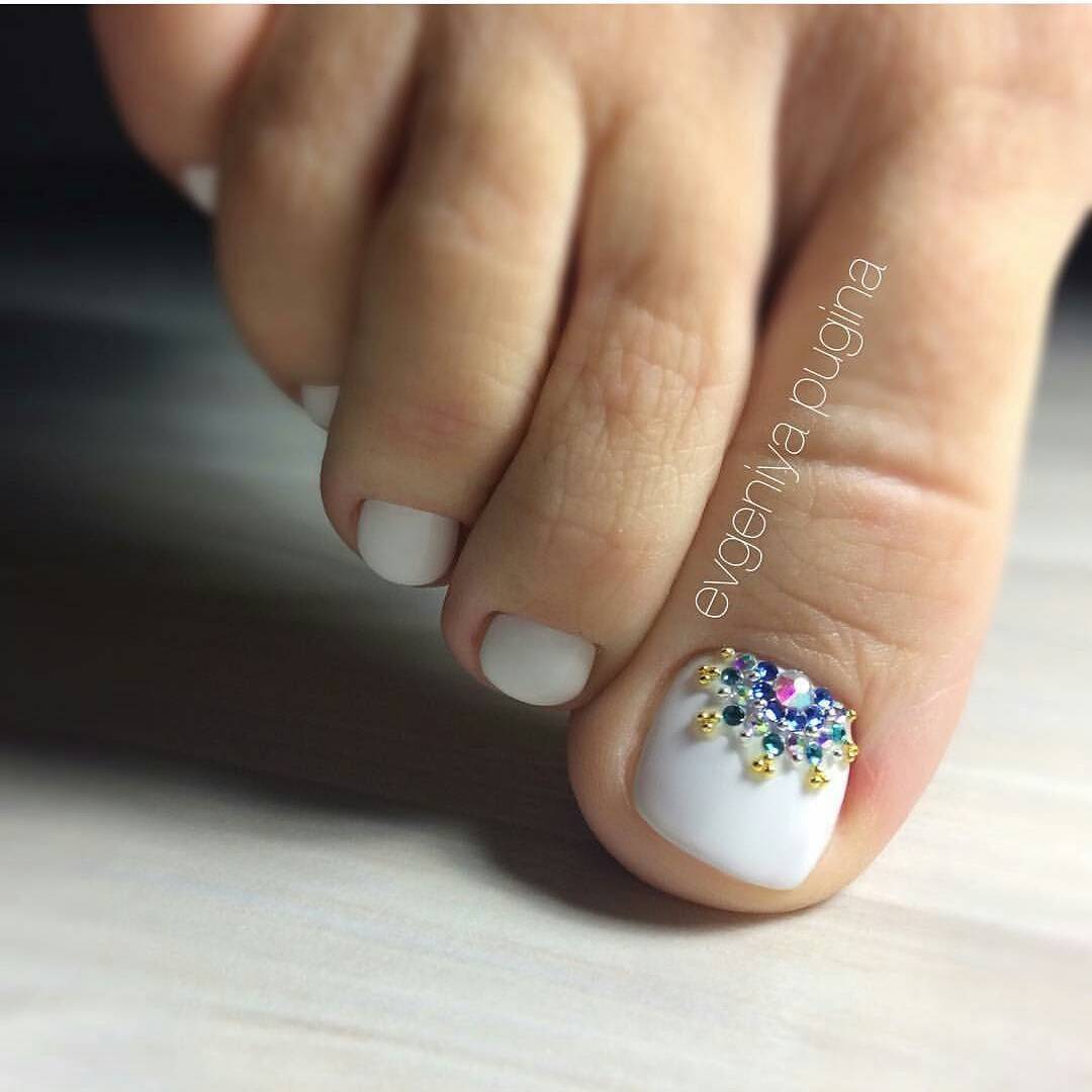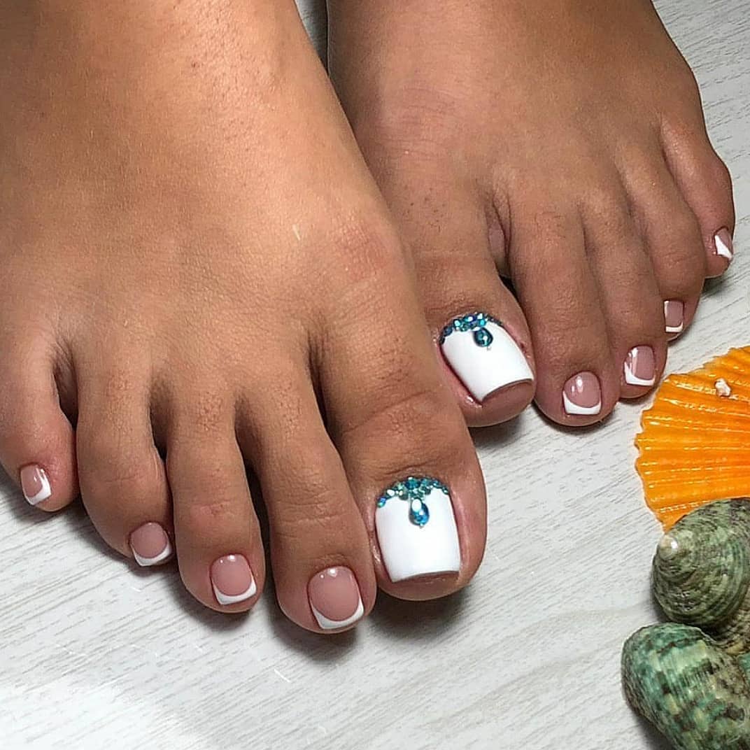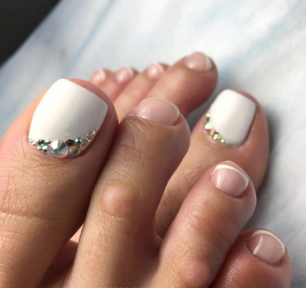 - белый педикюр хорошо смотрится только на ухоженных ноготках, имеющих идеальную форму. Если на ногтях имеются очевидные неровности и другие изъяны, то следует отказаться от белого педикюра или замаскировать их стразами или глиттером.