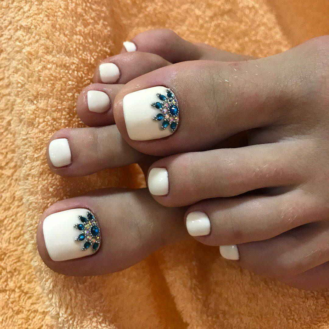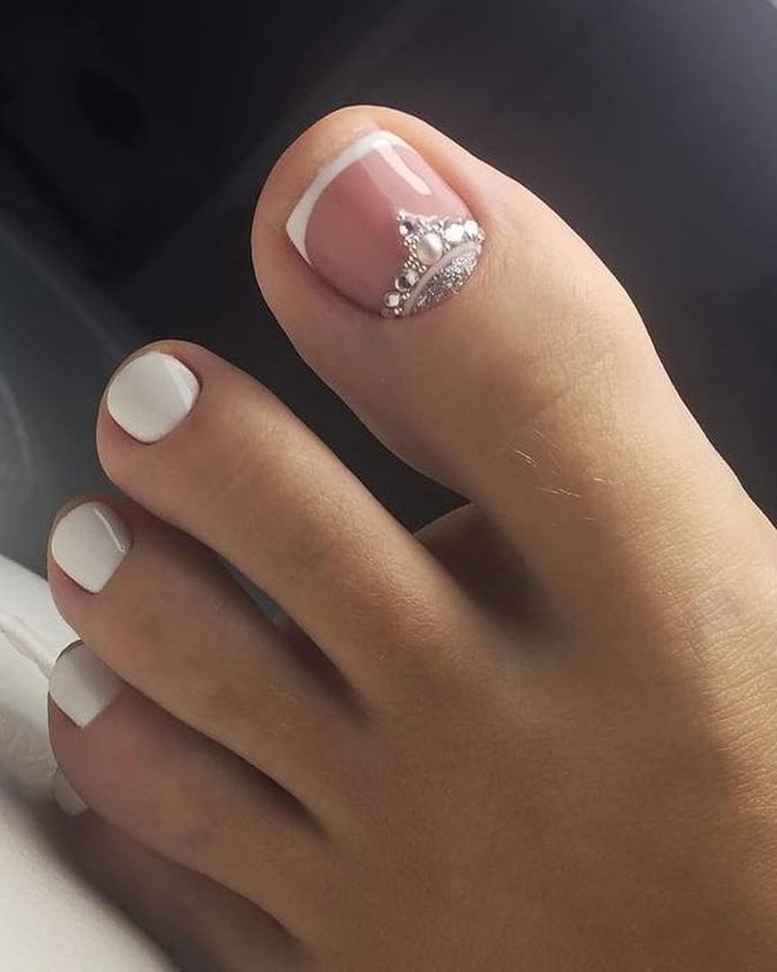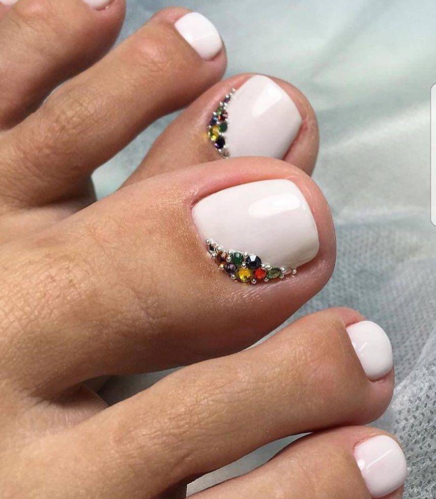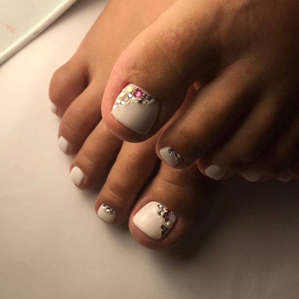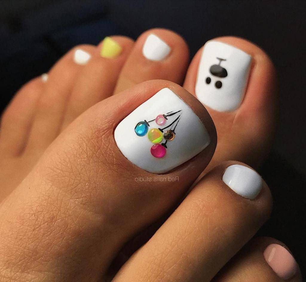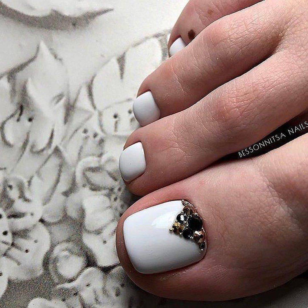 - белый педикюр хорошо смотрится только на ухоженных ноготках, имеющих идеальную форму. Если на ногтях имеются очевидные неровности и другие изъяны, то следует отказаться от белого педикюра или замаскировать их стразами или глиттером.