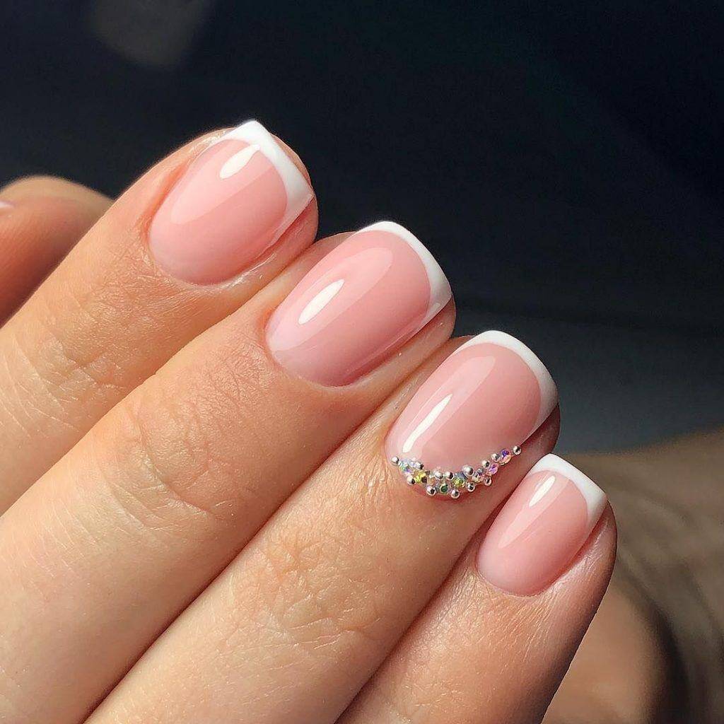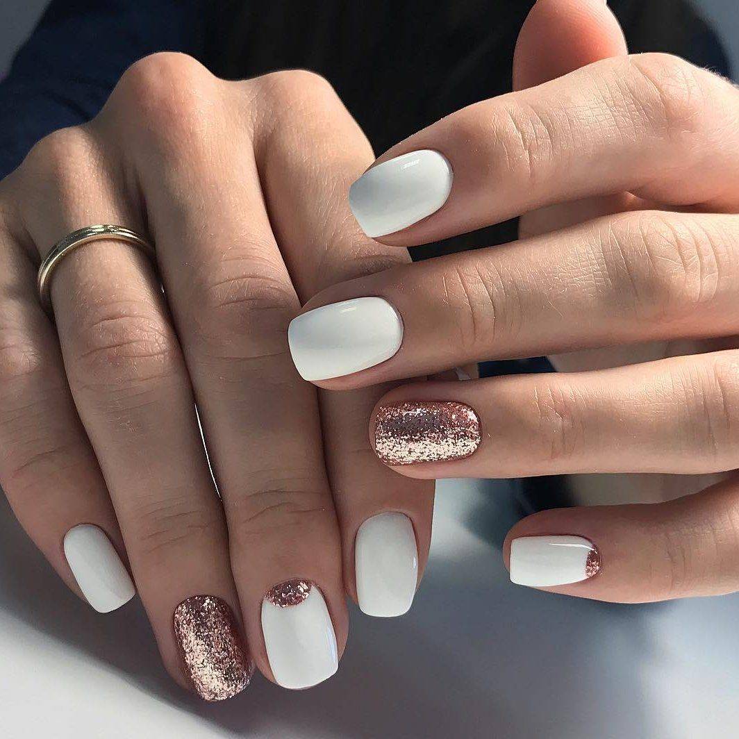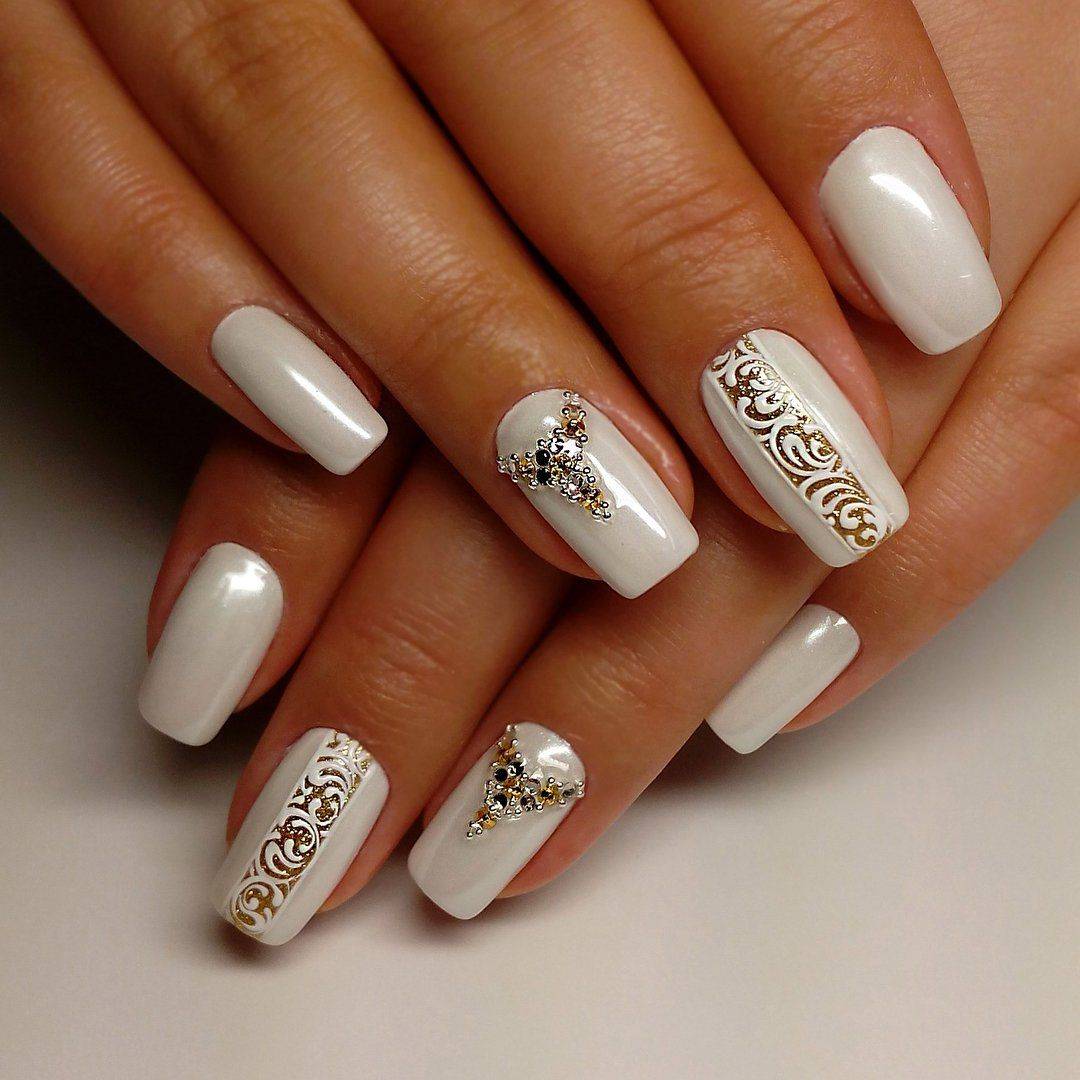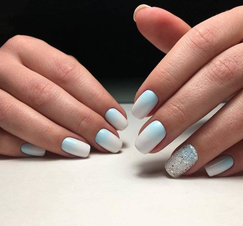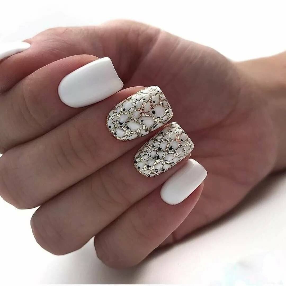 Однотонный маникюр практически не нуждается в декоре, особенно если речь идет о белом цвете. Но вы всегда можете дополнить маникюр стразами или бульонками в прикорневой зоне, серебряным глиттером.