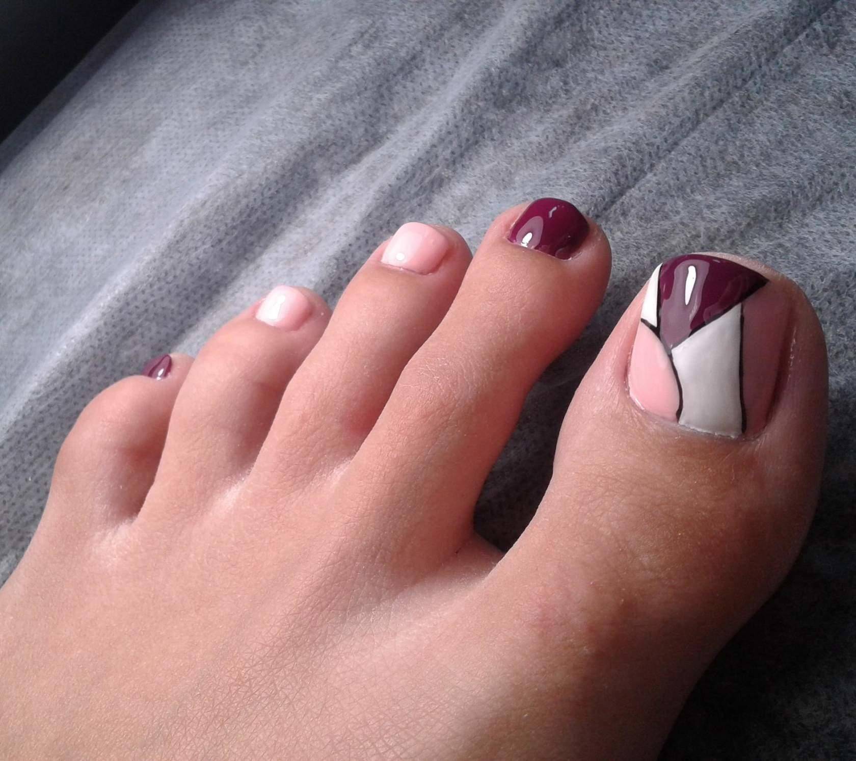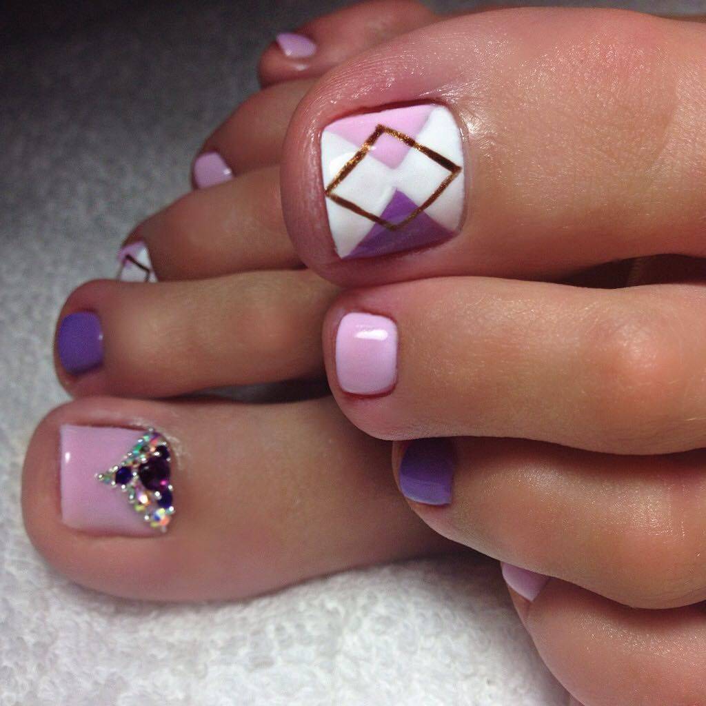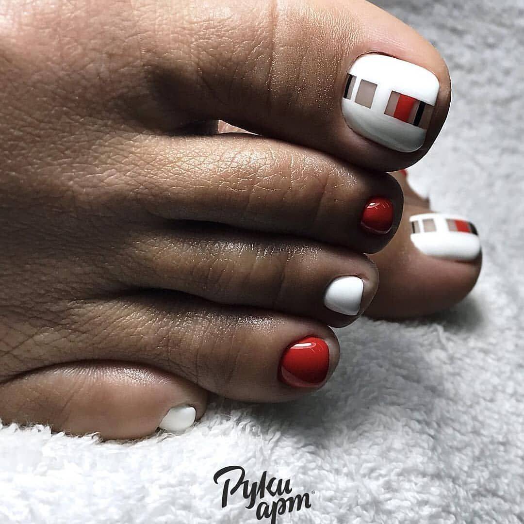 Геометрические узоры — украшают любой педикюр, но наиболее оригинально они выглядят на покрытиях, близких к натуральному бежевому цвету. Среди модных тенденций стали появляться более плавные линии и фигуры без четких границ и углов. Сам рисунок может наноситься не только лаковыми покрытиями, но и стразами, блестками, а также с помощью штампов и термопленок.