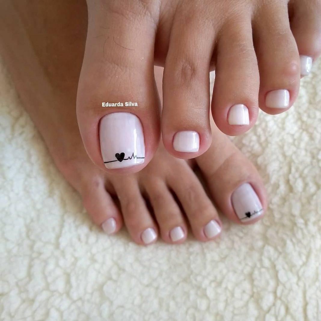 Белый педикюр довольно ярко подчеркивает форму ногтя, поэтому его лучше избегать девушкам с неровно растущими ногтями.