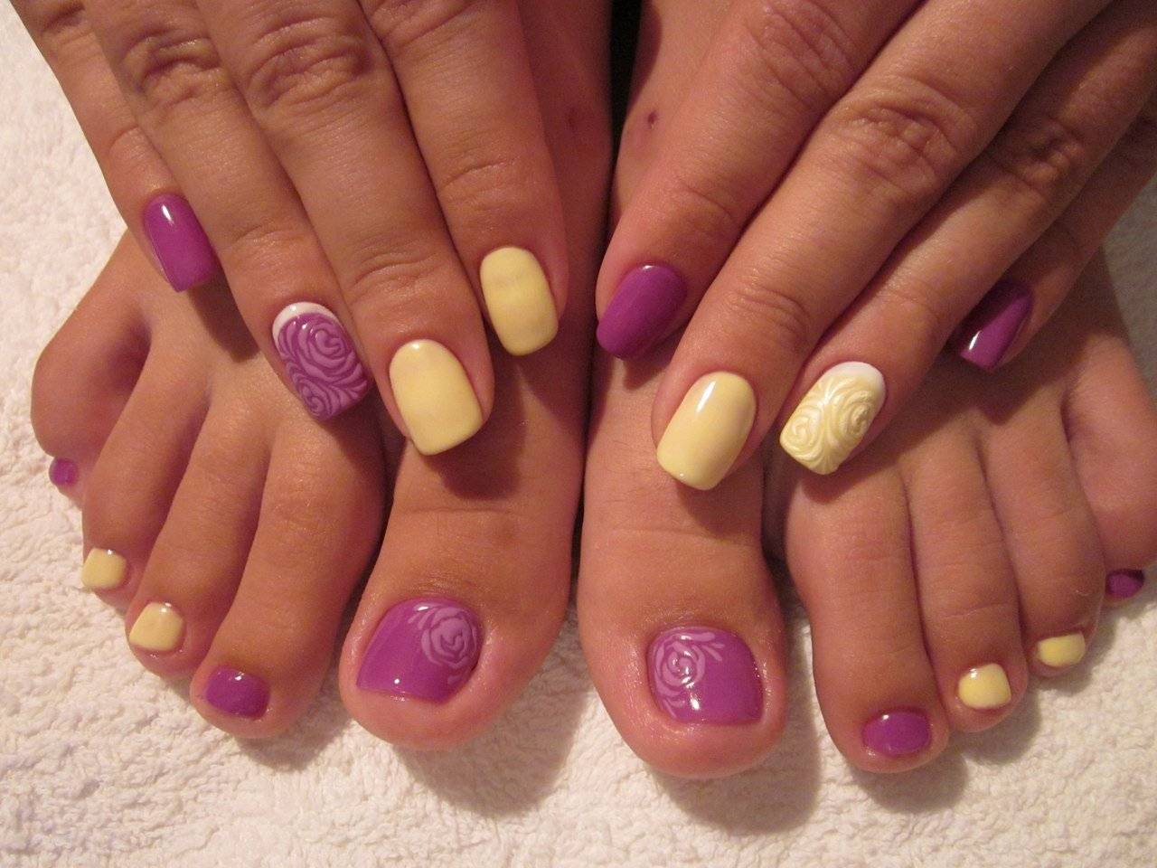 - Ногти на руках и ногах должны быть оформлены в одной цветовой гамме, при чем, ноготки на ногах всегда красятся лаком на один или два тона темнее.