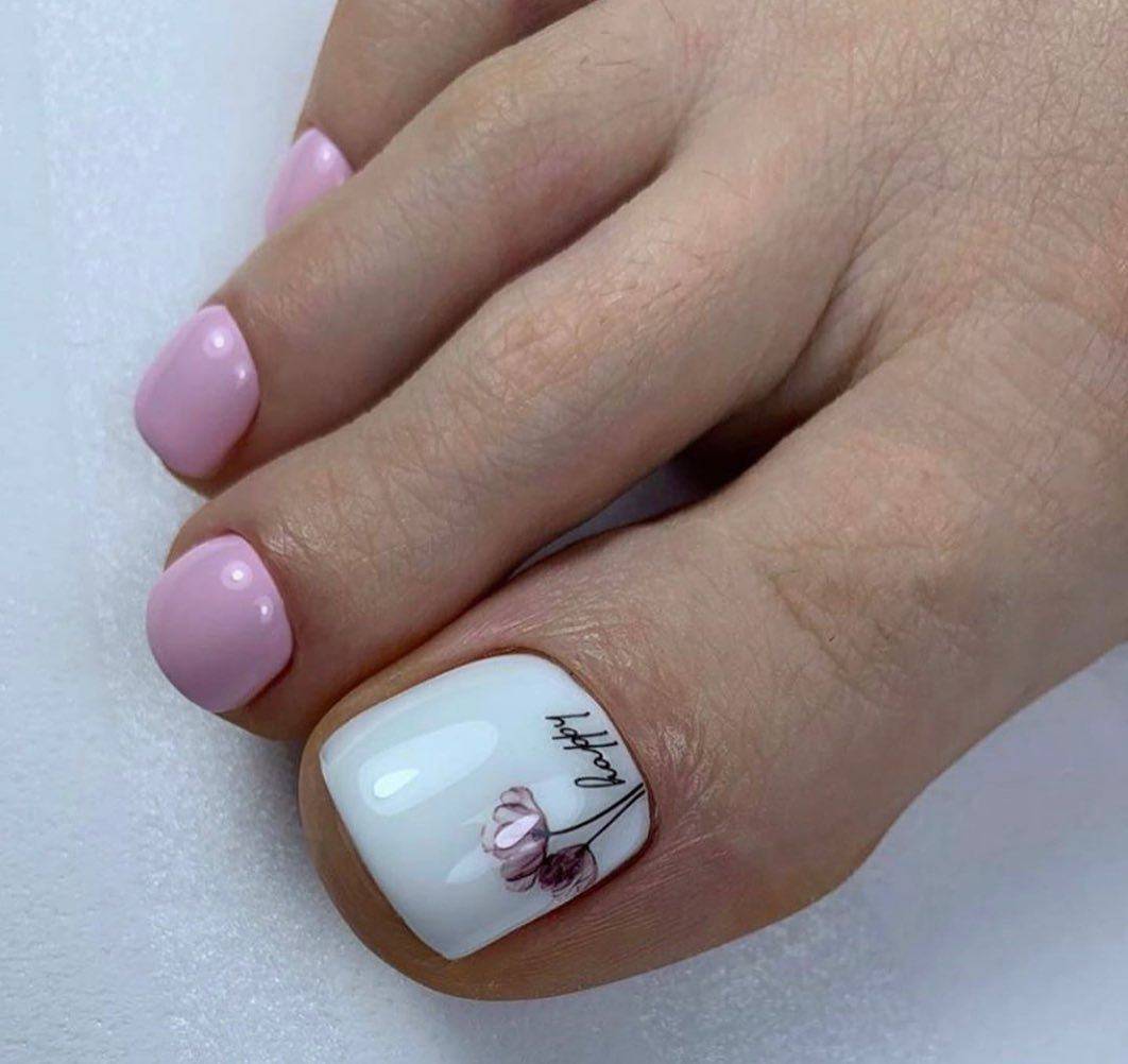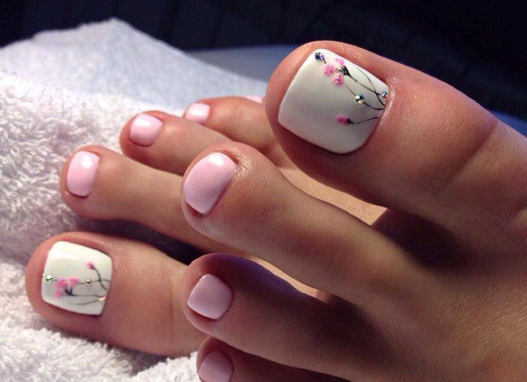 Вы получите прекрасное сочетание, объединив в единую композицию белый цвет и розовый, такой педикюр подойдет девушке с романтичным характером, подчеркнув ее нежную натуру. Бело-розовое покрытие ногтей хорошо подходит к принту с цветочным рисунком и прекрасно впишется в весенний и летний стиль. С таким педикюром следует выдержать обязательное условие – розовый цвет должен присутствовать только в одном из предметов одежды или аксессуара.