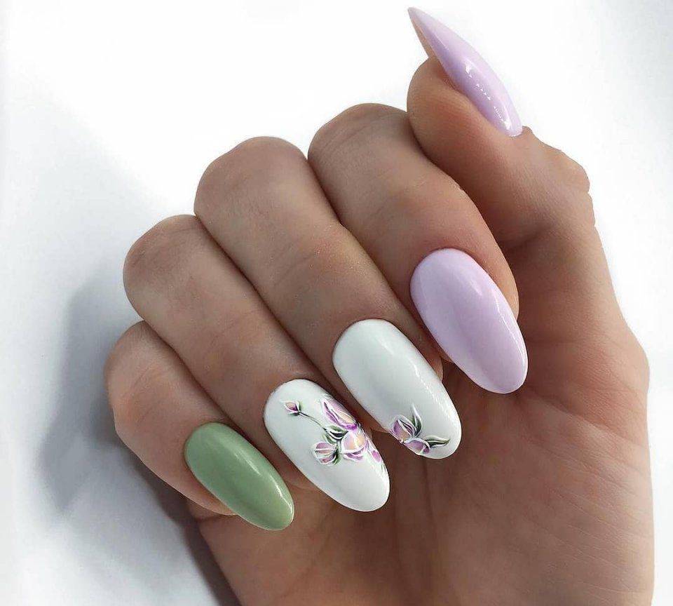 Если вам нравятся яркие варианты, то при дизайне ногтей можно применить сразу несколько тонов, сочетая пастельные с яркими красками.