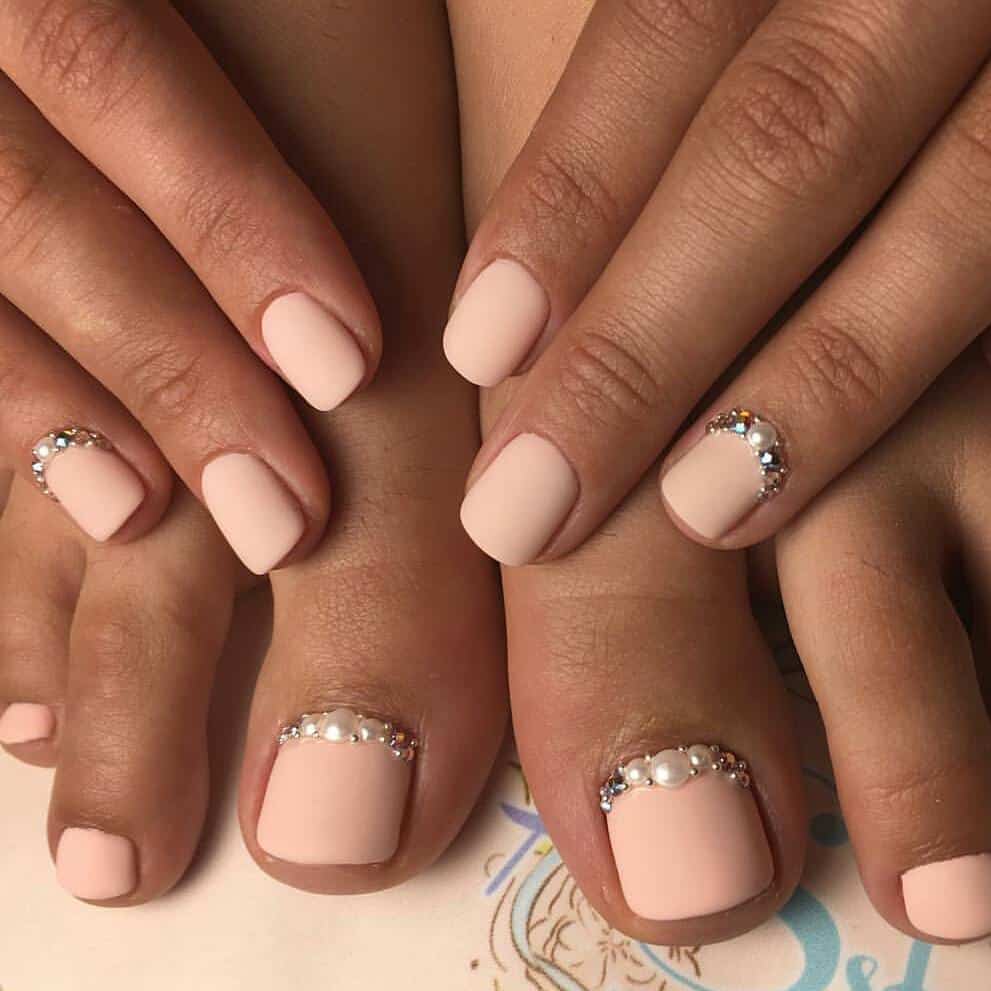нежных тонов допустимо делать маникюр и педикюр в нюдовых цветах. В качестве