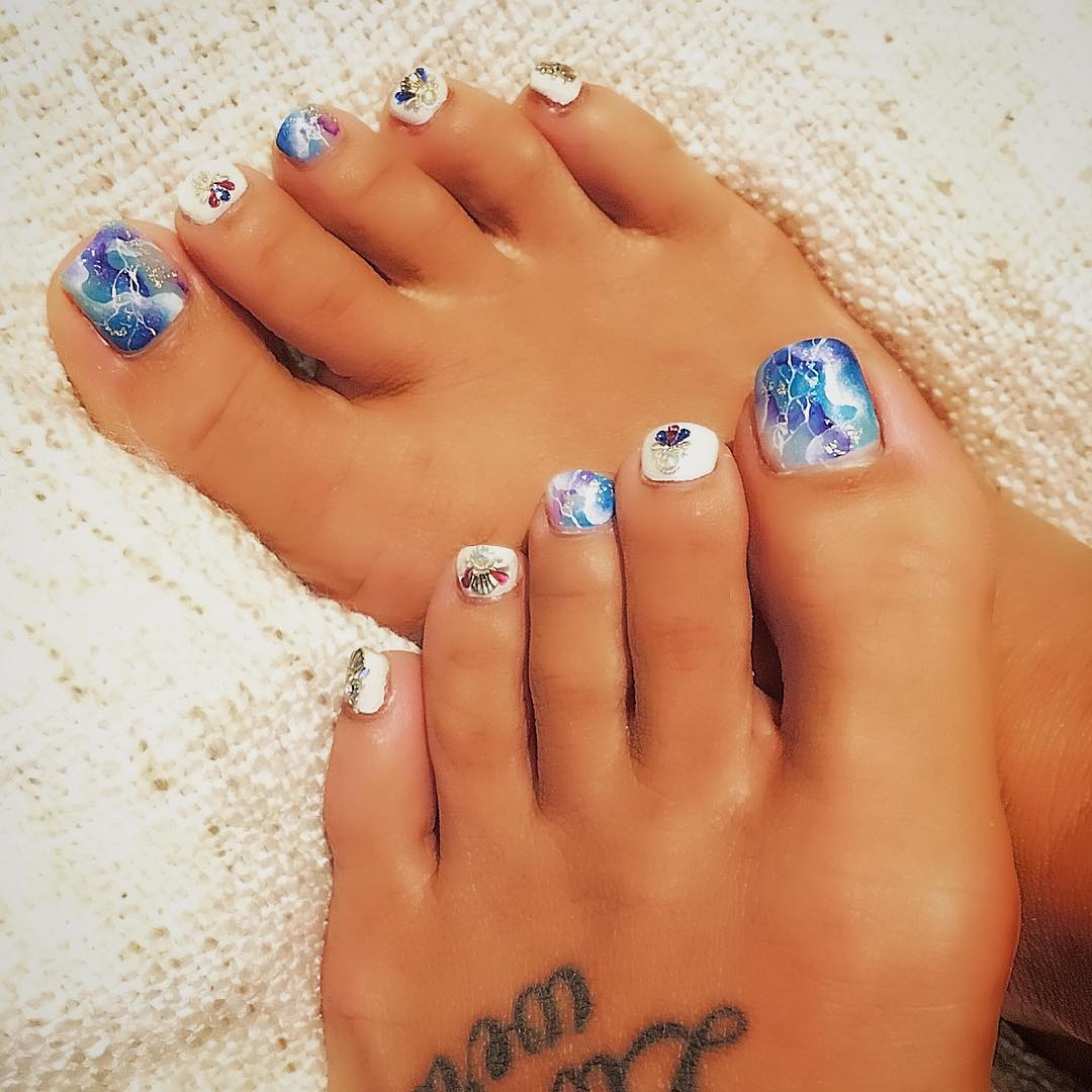Отдельного внимания заслуживает летний педикюр. Именно летом девушки могут позволить себе яркий и неординарный нейл-арт, который будет эффектно смотреться с босоножками, слипонами и другой открытой обувью. Летний педикюр изобилует розовыми, голубыми, бирюзовыми оттенками с серебряным декором.
