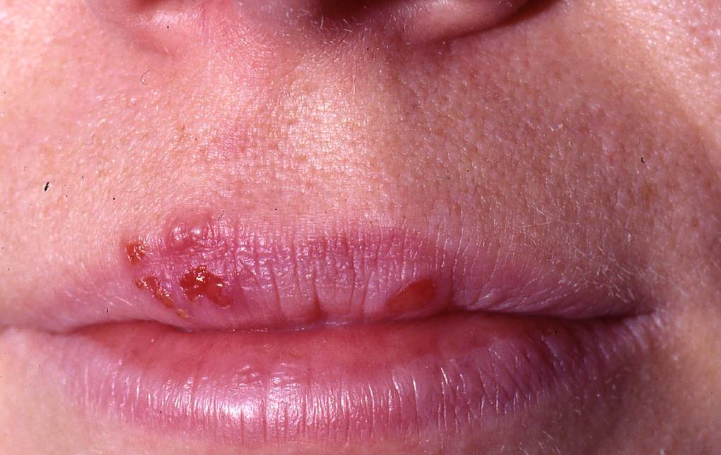 Этот вид герпетической инфекции начинается постепенно. Сначала на языке или коже губ появляется легкое пощипывание, которое сменяется болью.