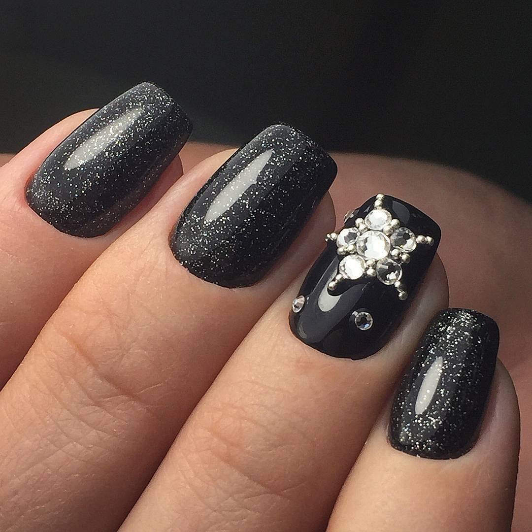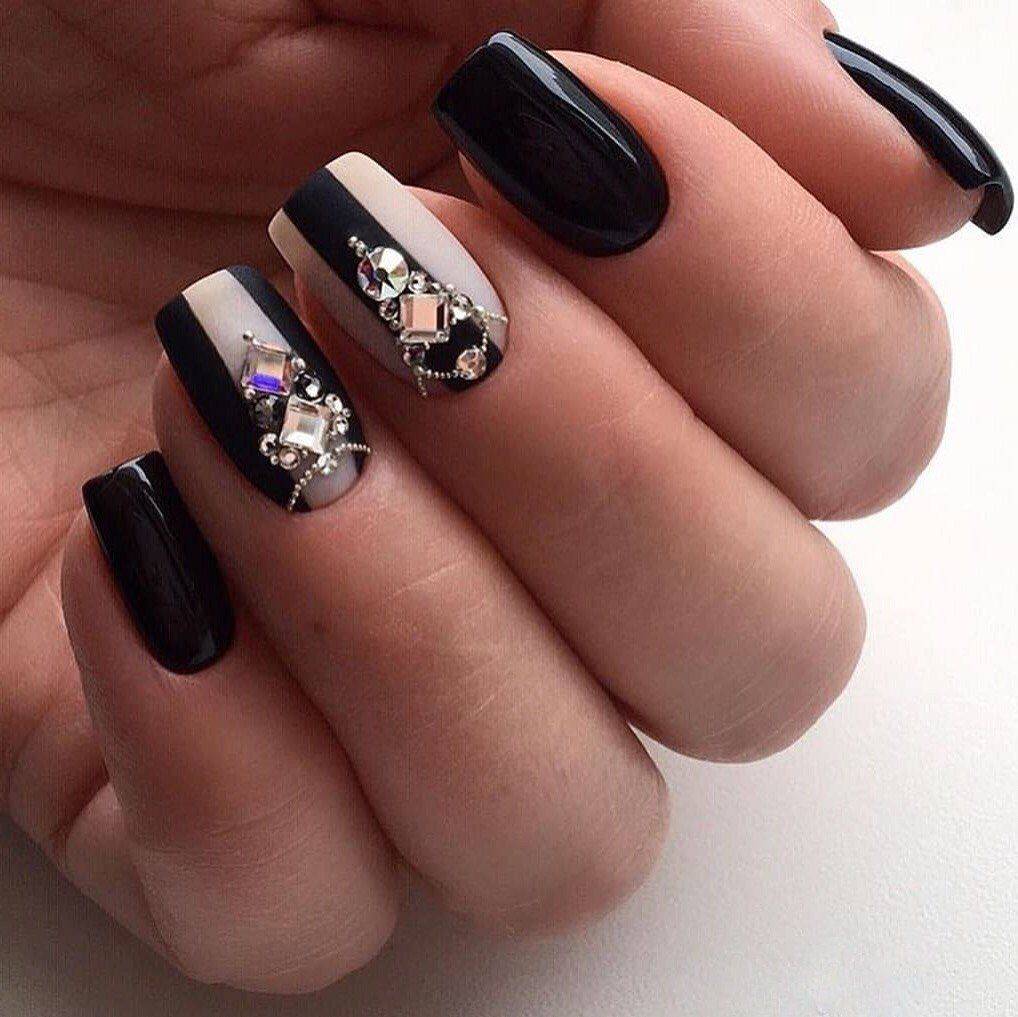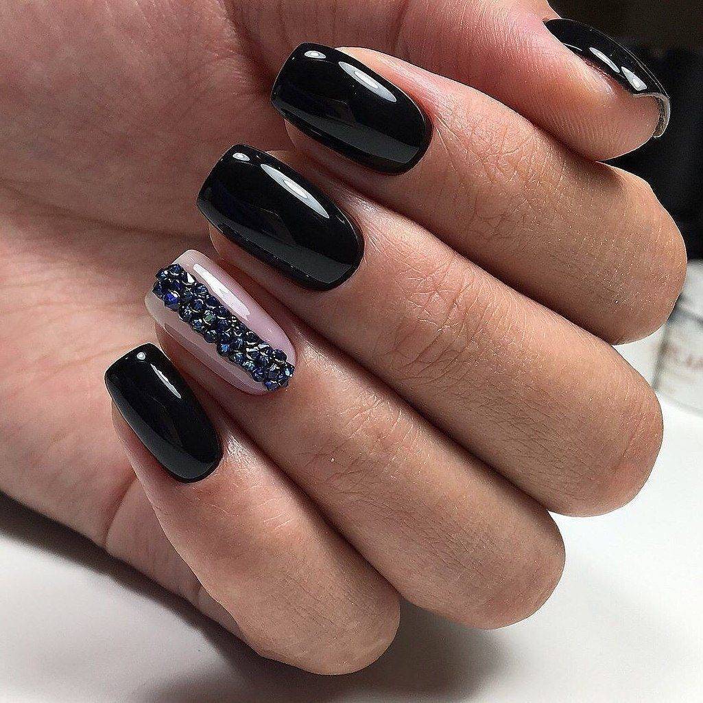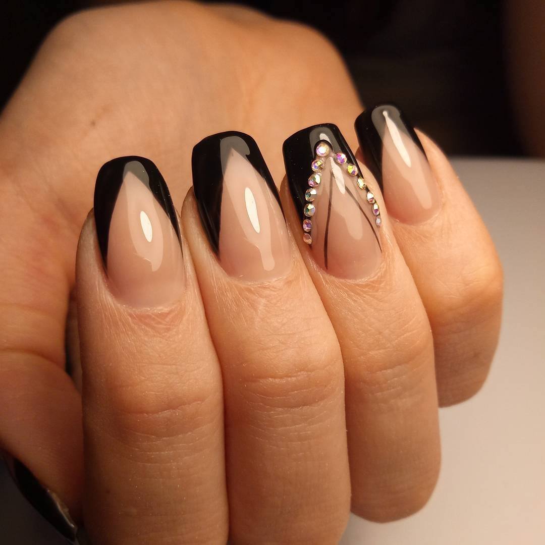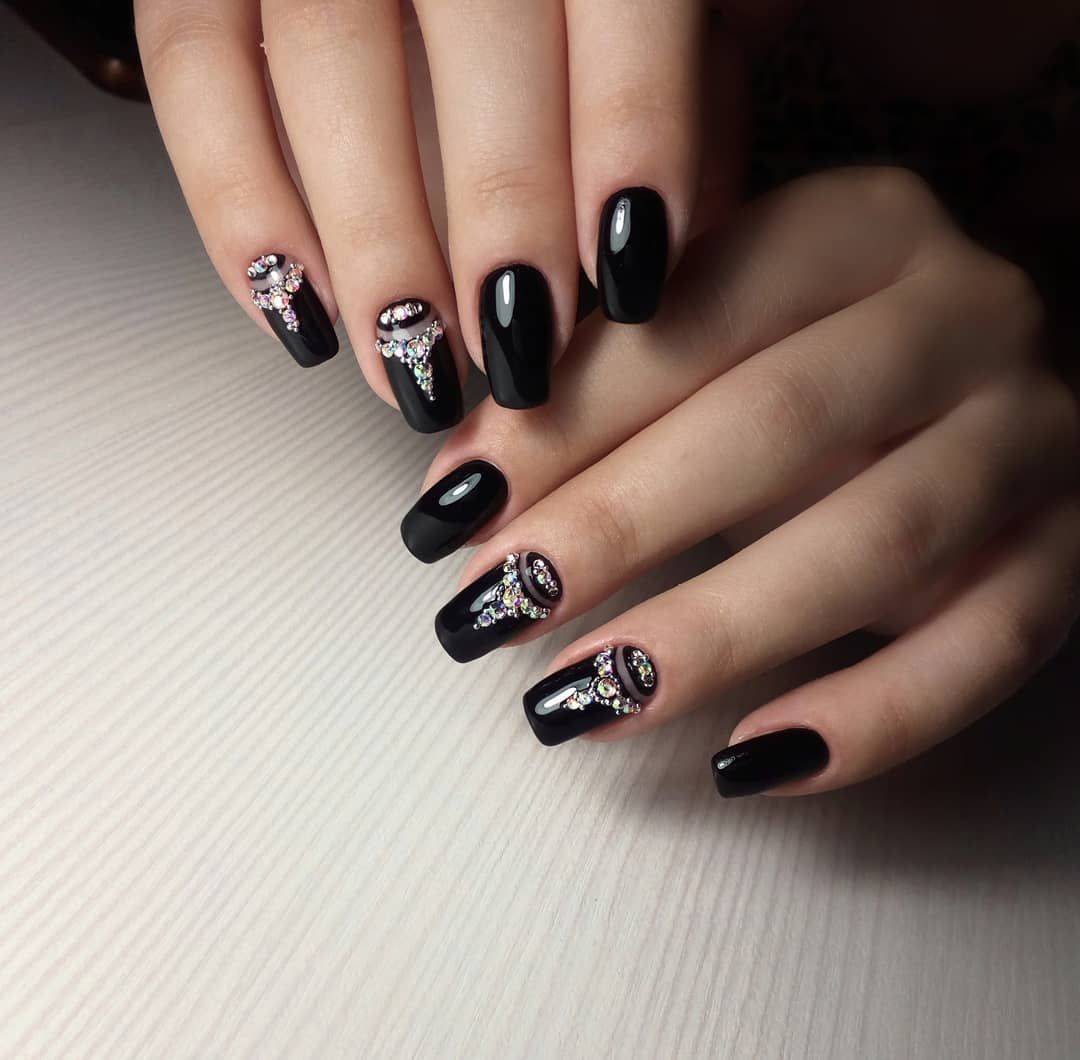 Маникюр черные ногти со стразами 2020: эффектный дизайн на каждый день
