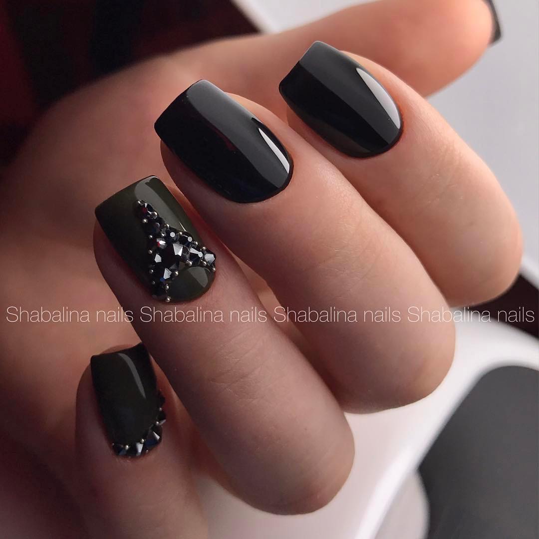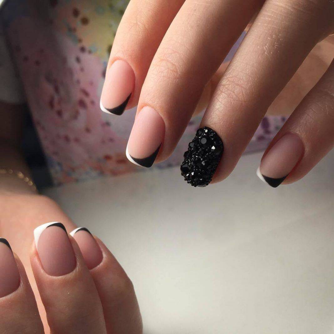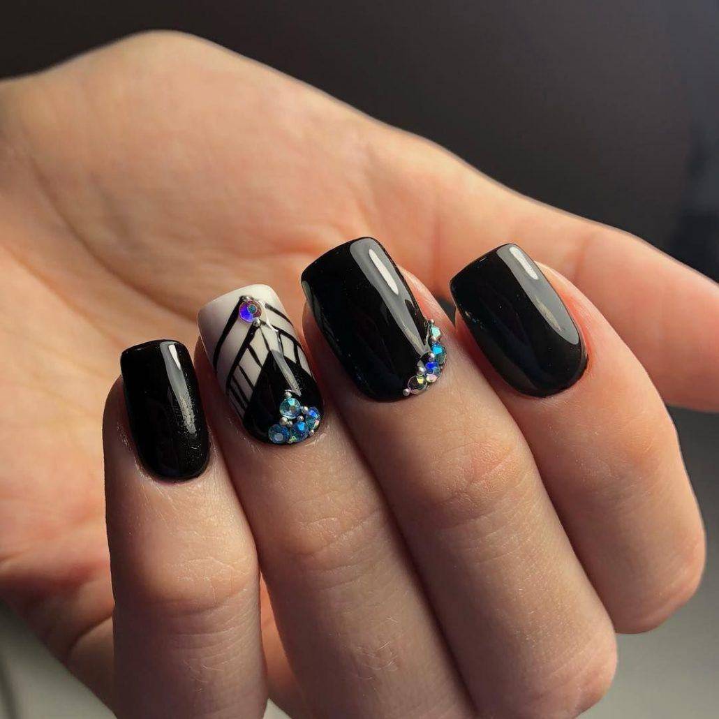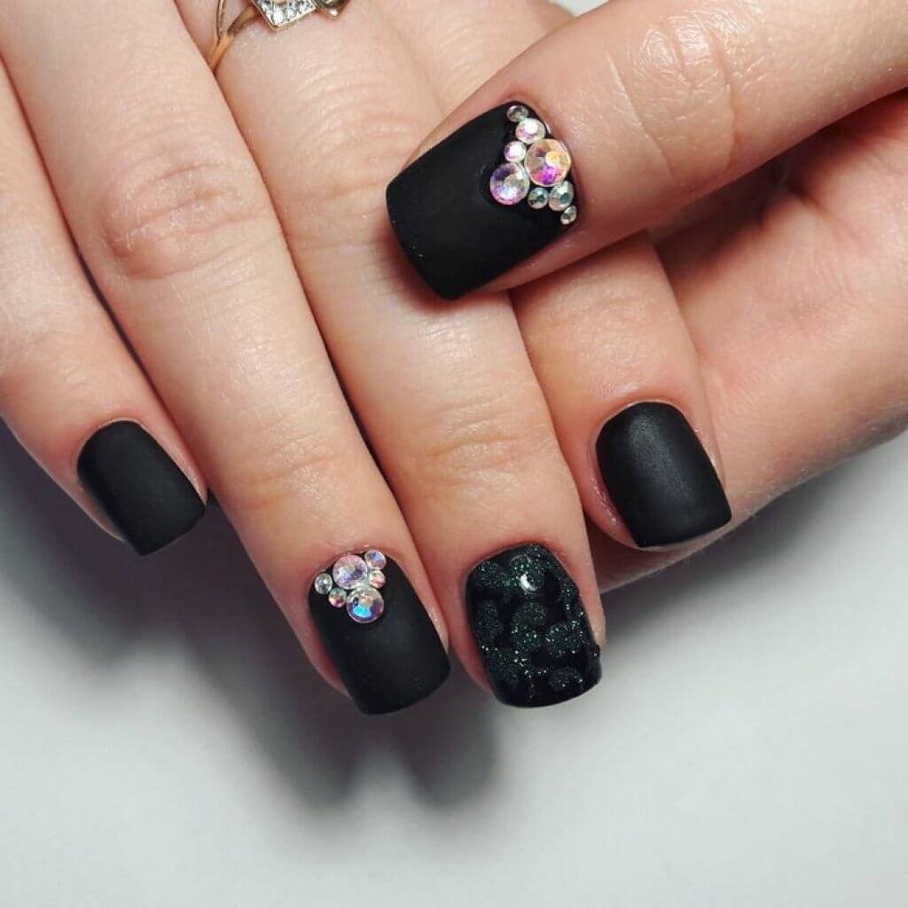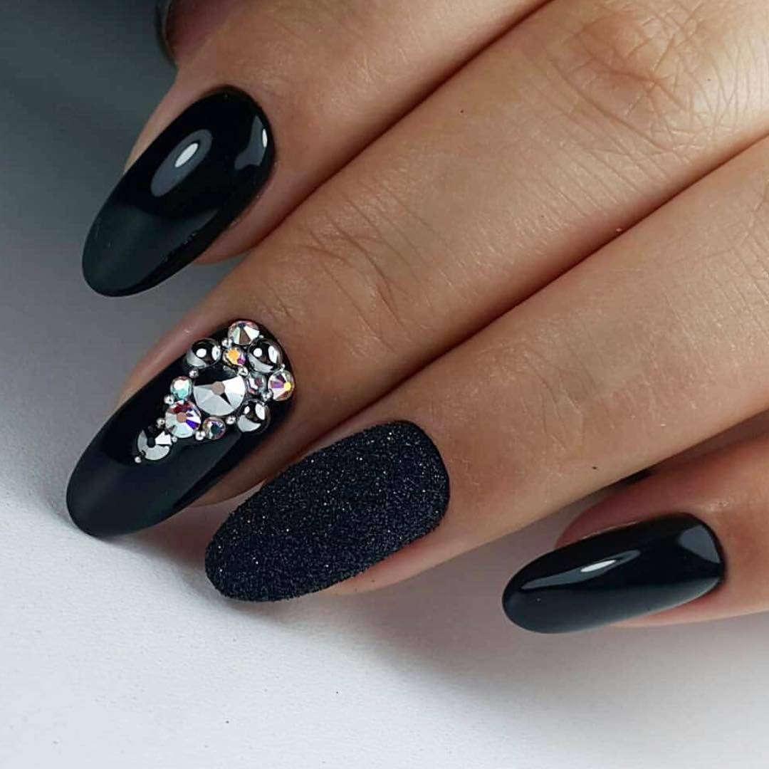 Маникюр черные ногти со стразами 2020: эффектный дизайн на каждый день