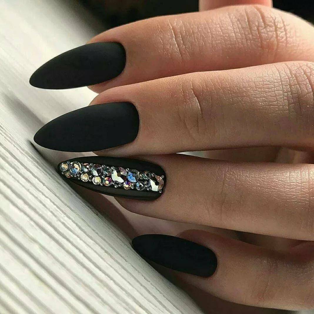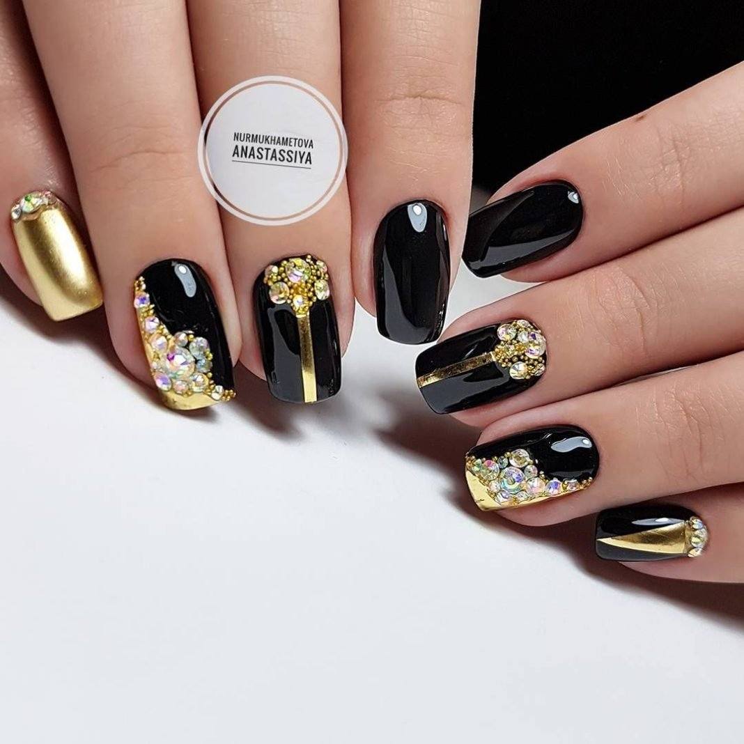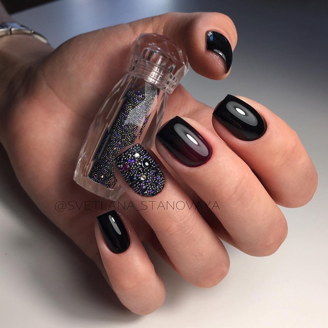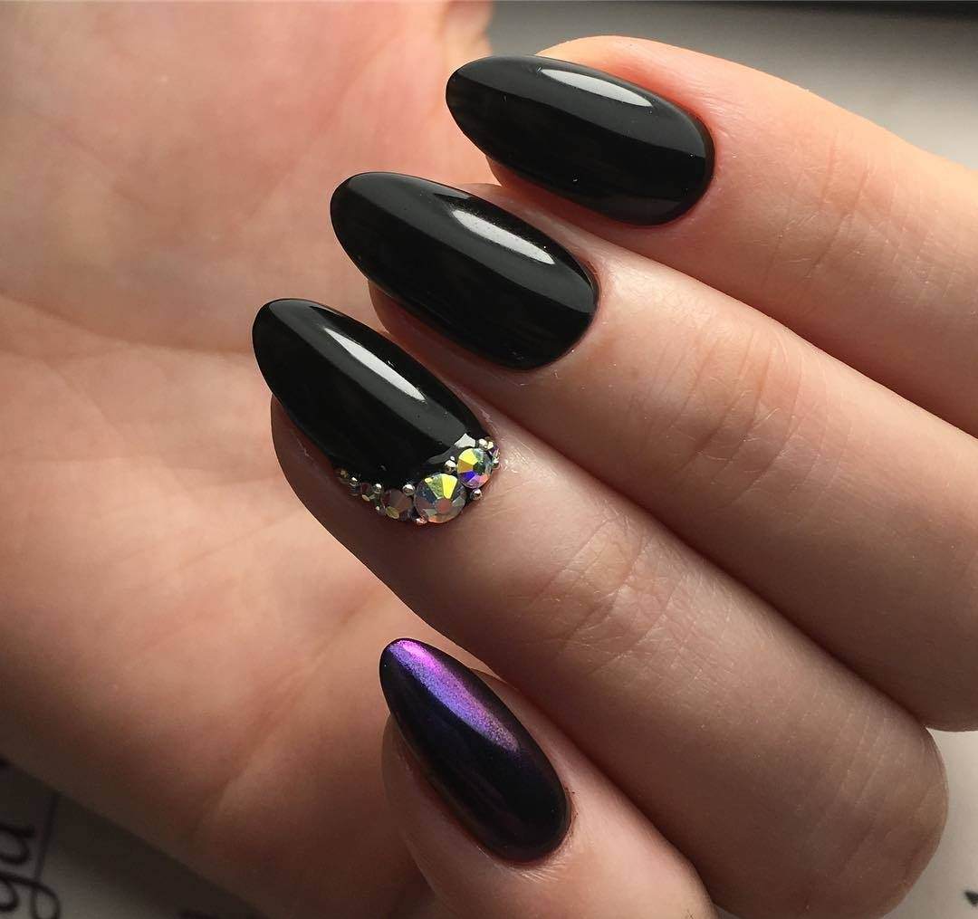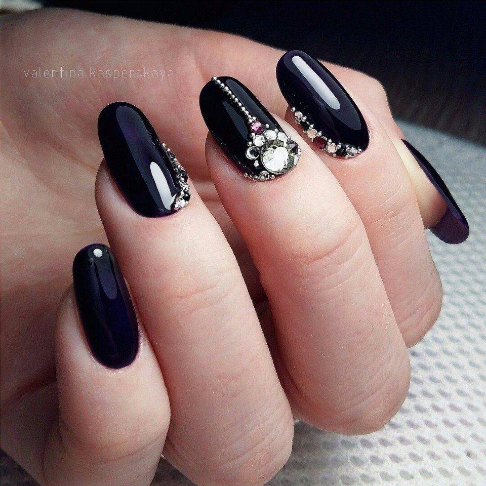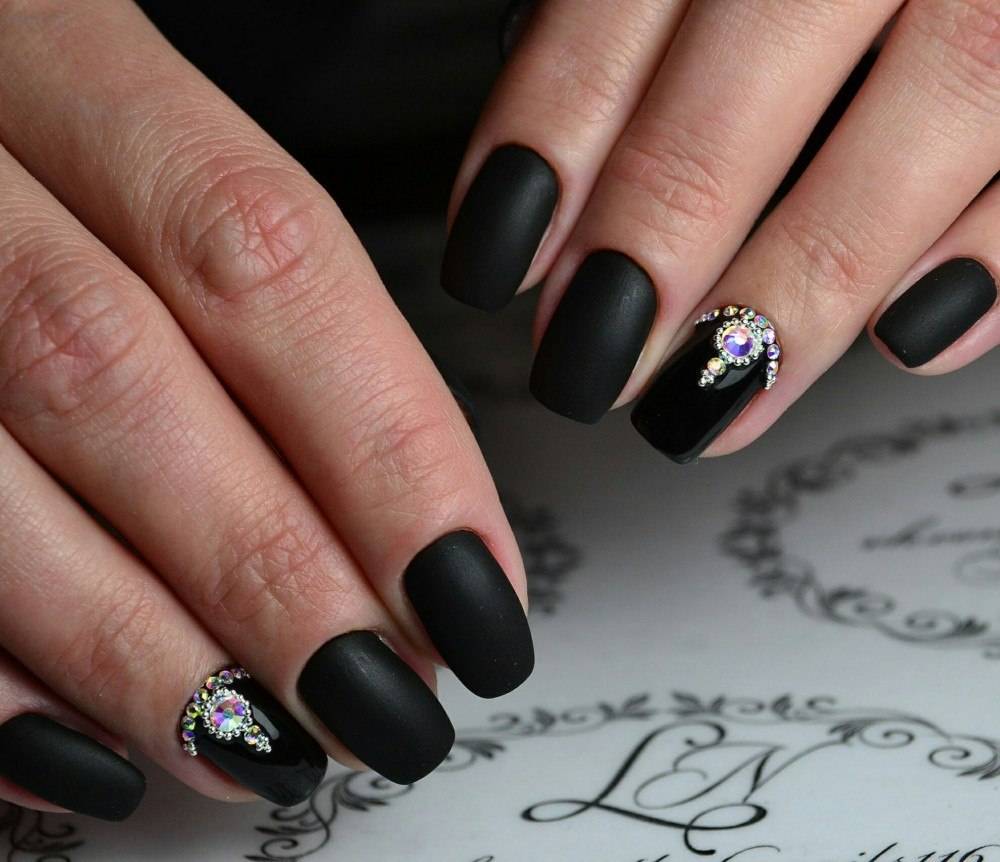 Маникюр черные ногти со стразами 2020: эффектный дизайн на каждый день
