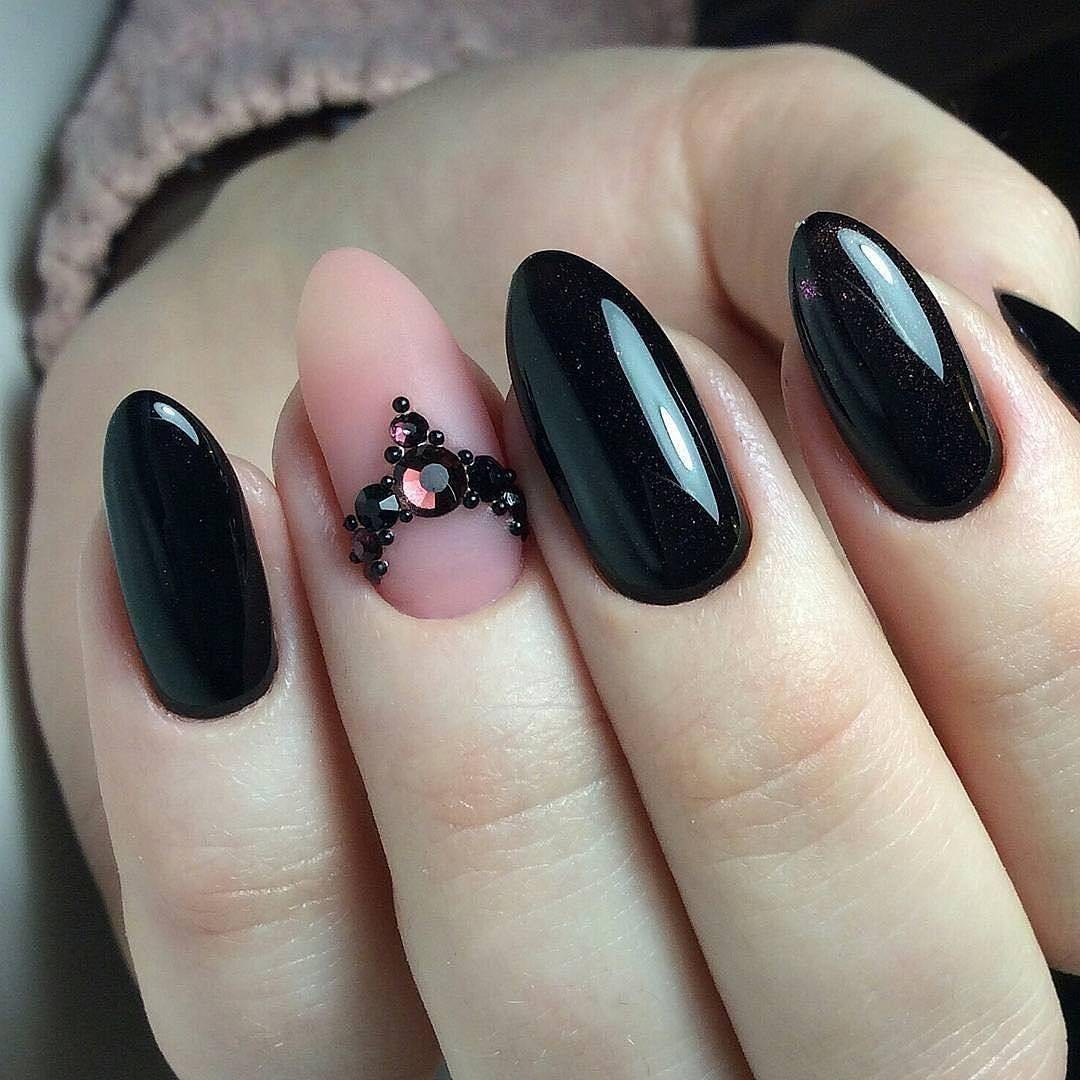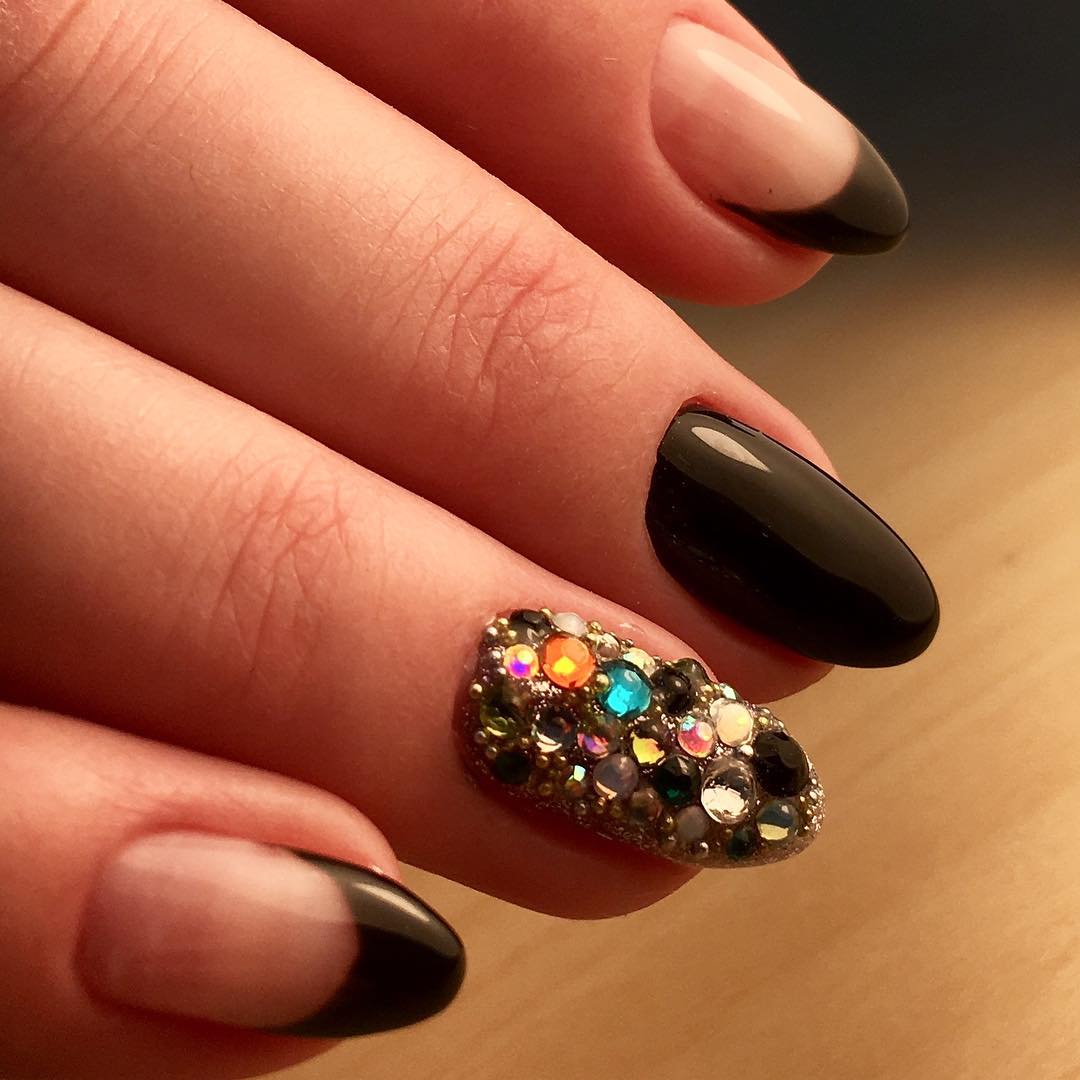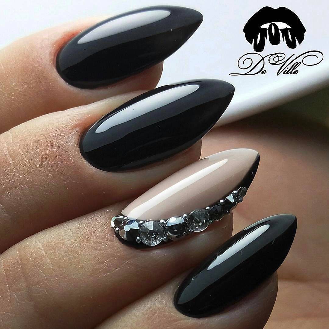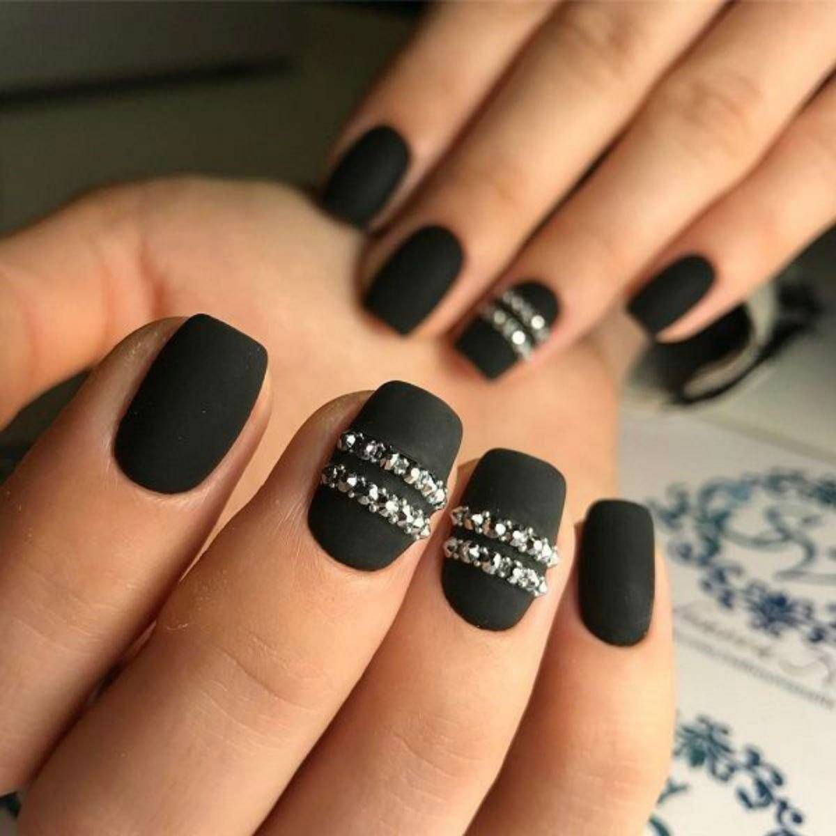 Маникюр черные ногти со стразами 2020: эффектный дизайн на каждый день