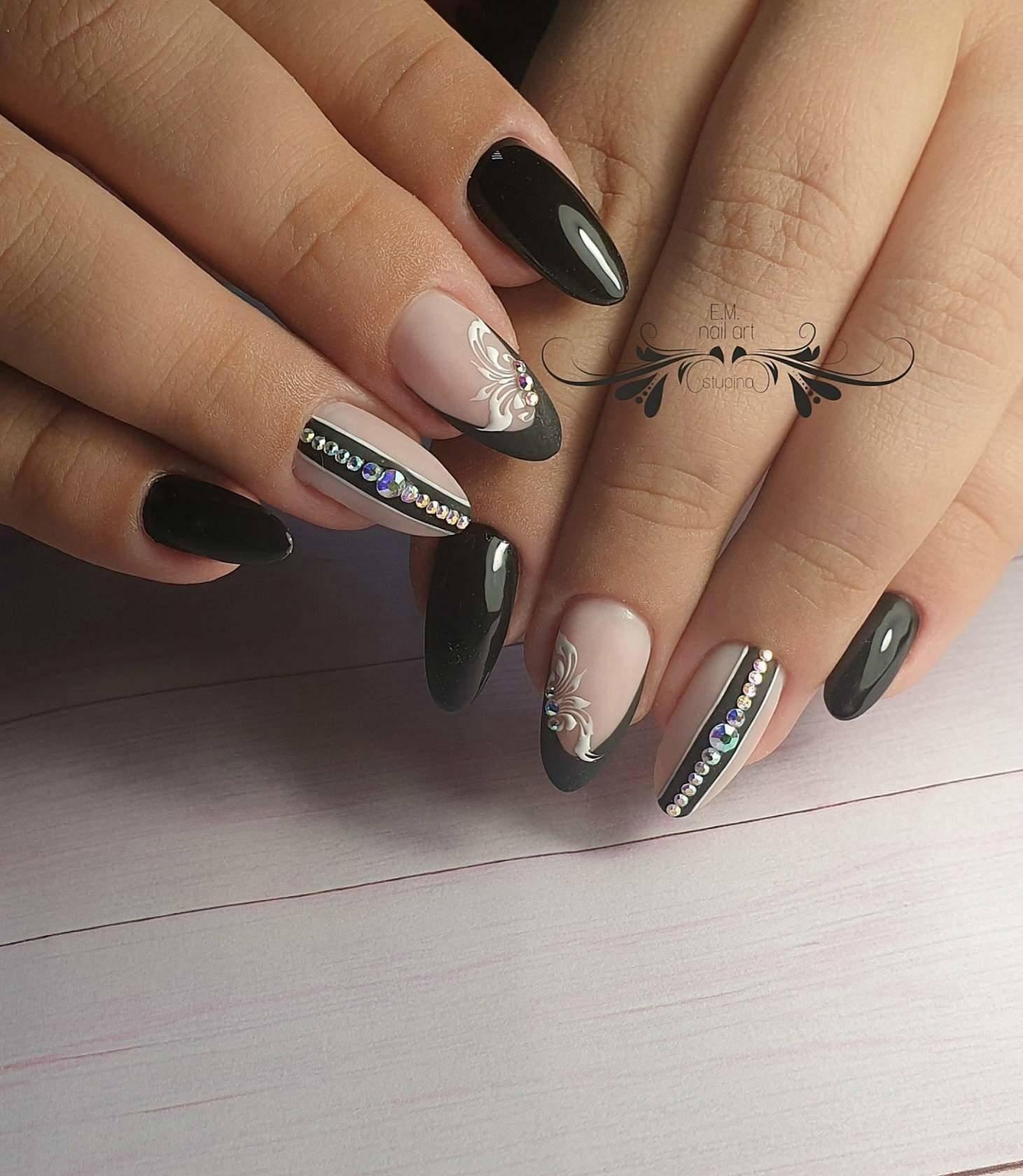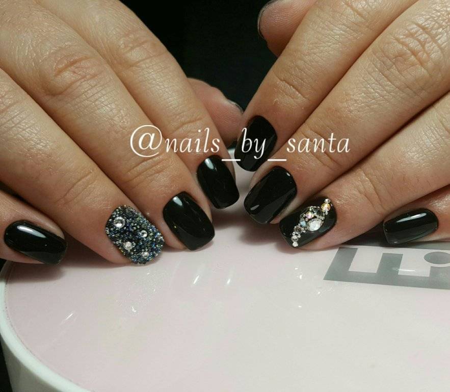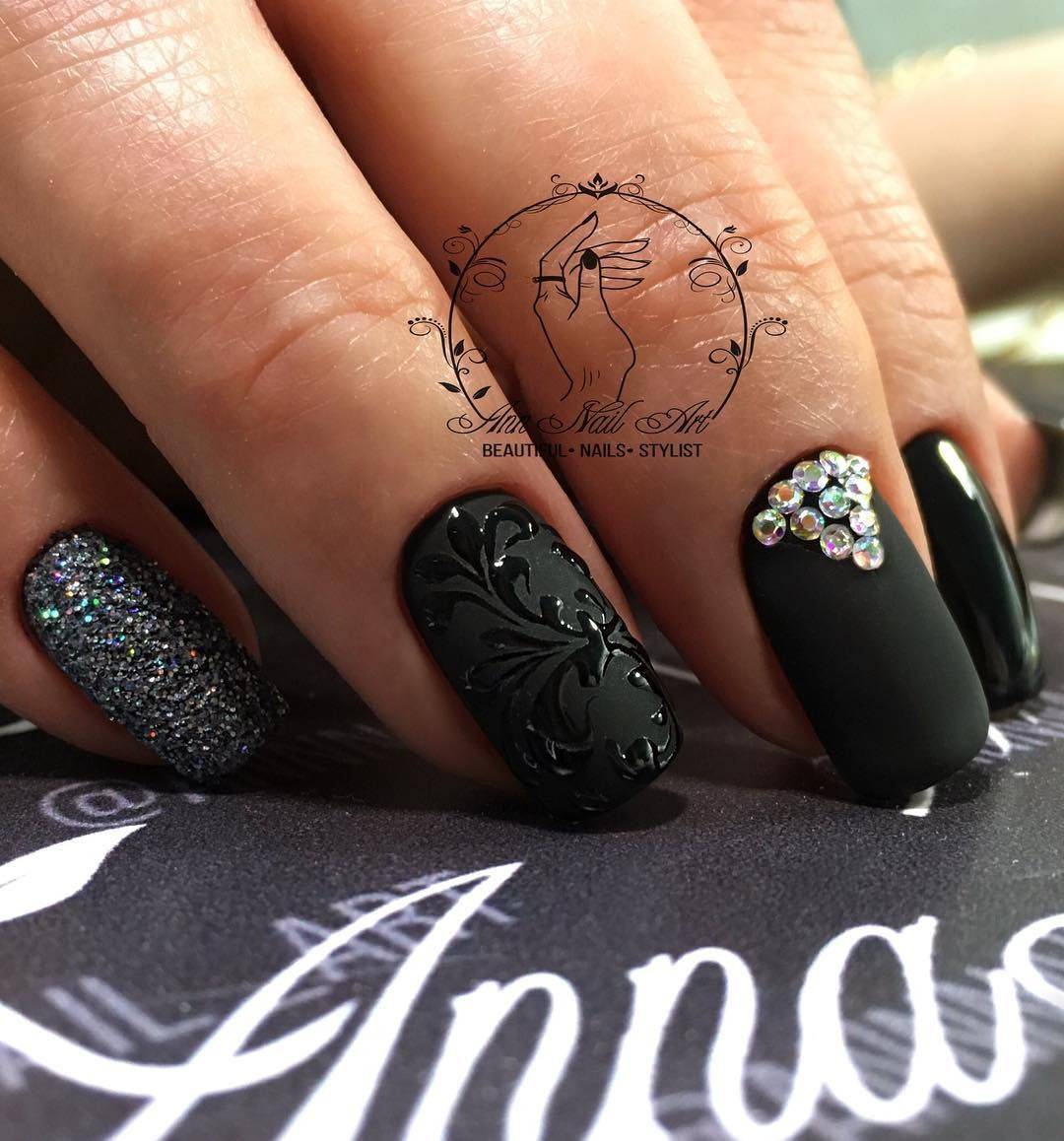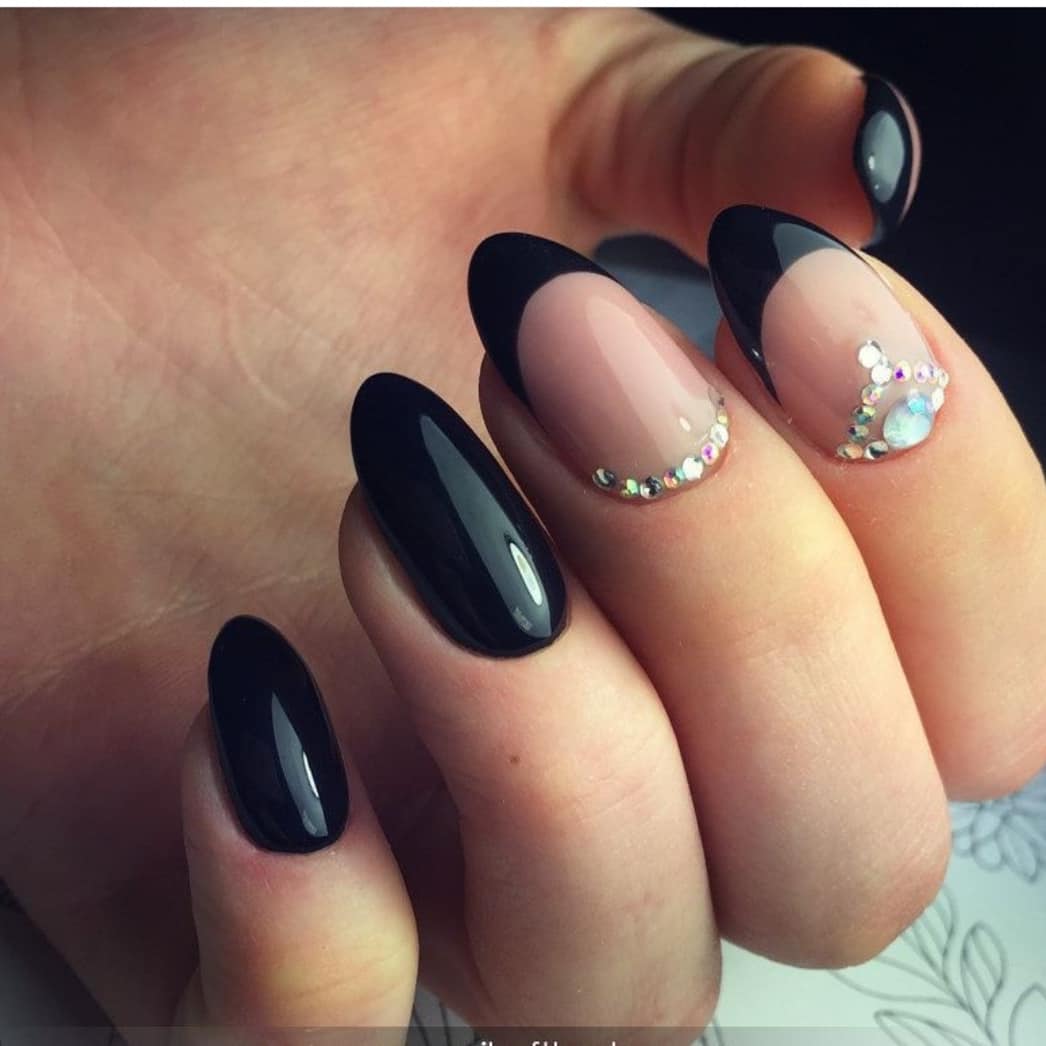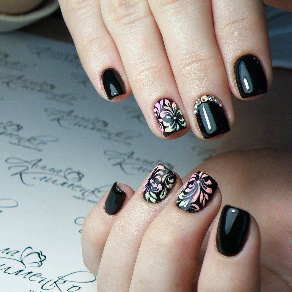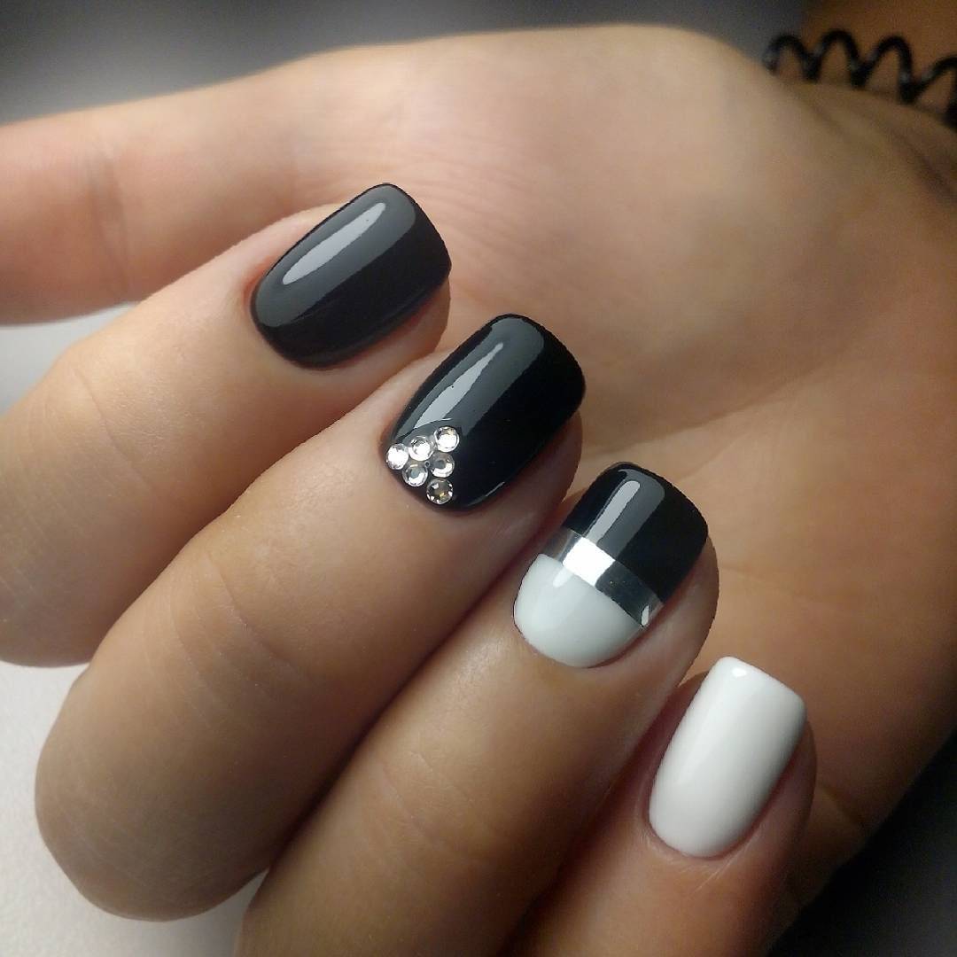 Маникюр черные ногти со стразами 2020: эффектный дизайн на каждый день