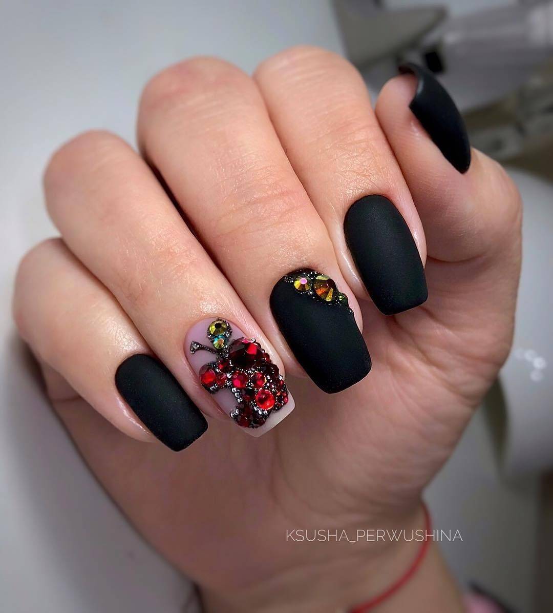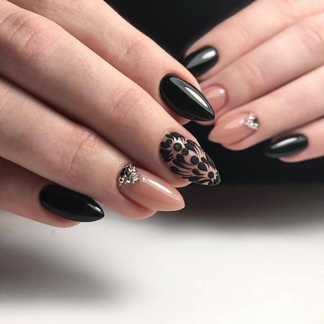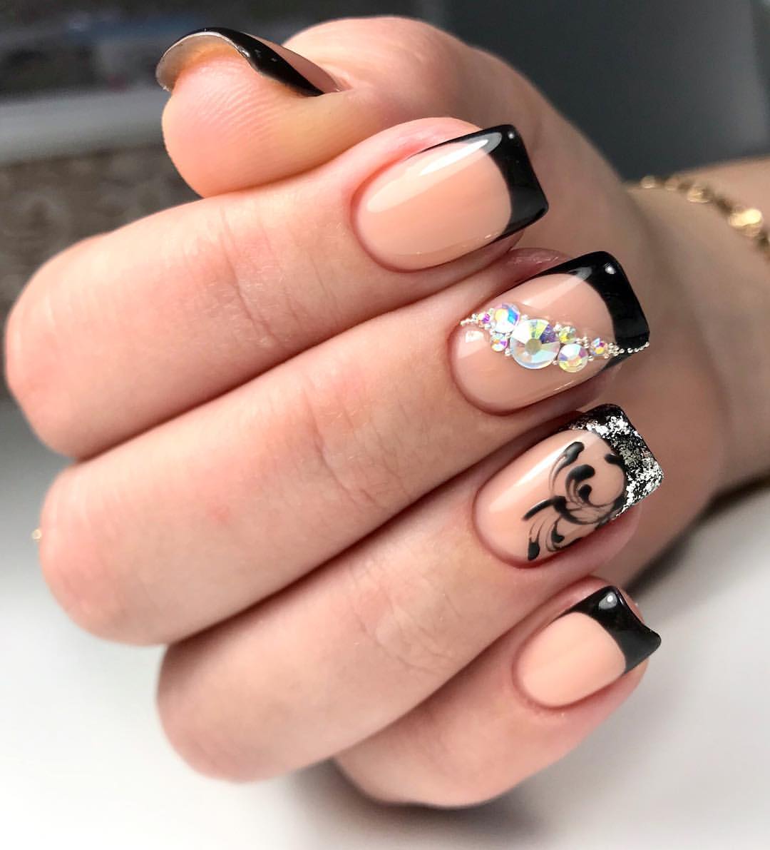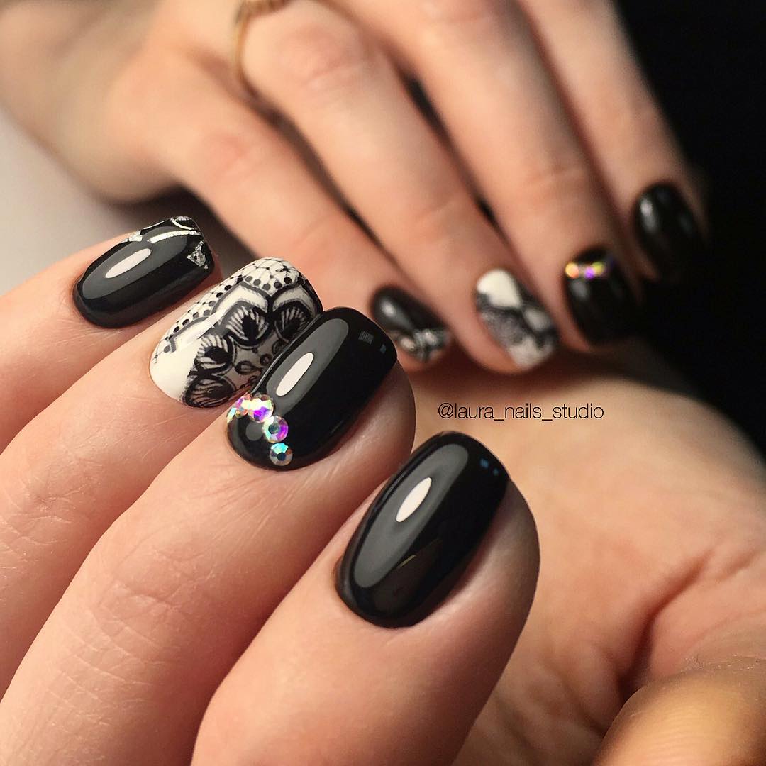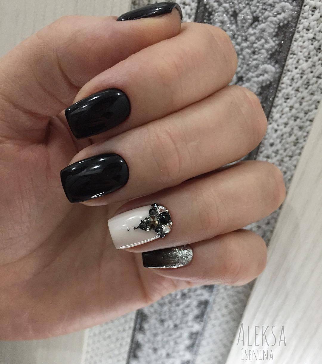 Маникюр черные ногти со стразами 2020: эффектный дизайн на каждый день