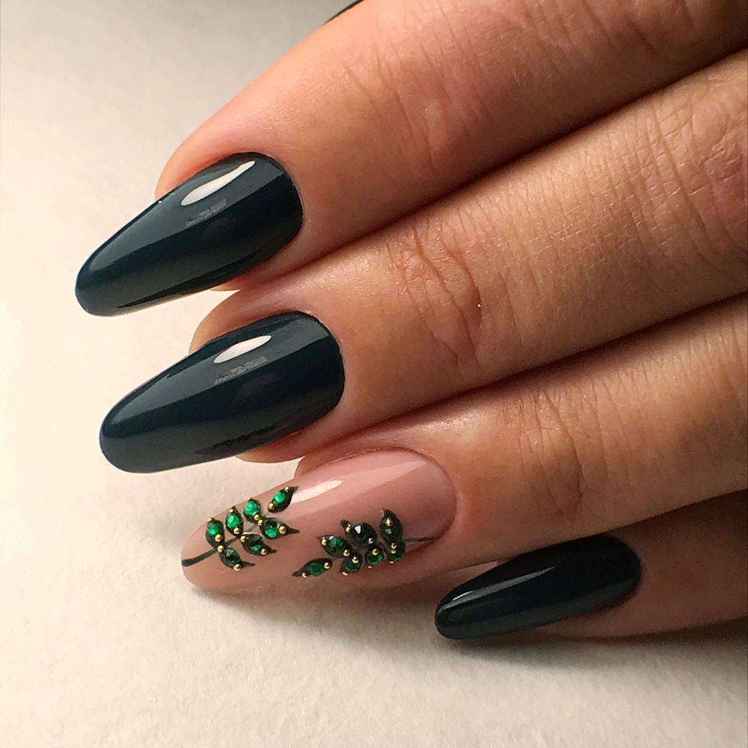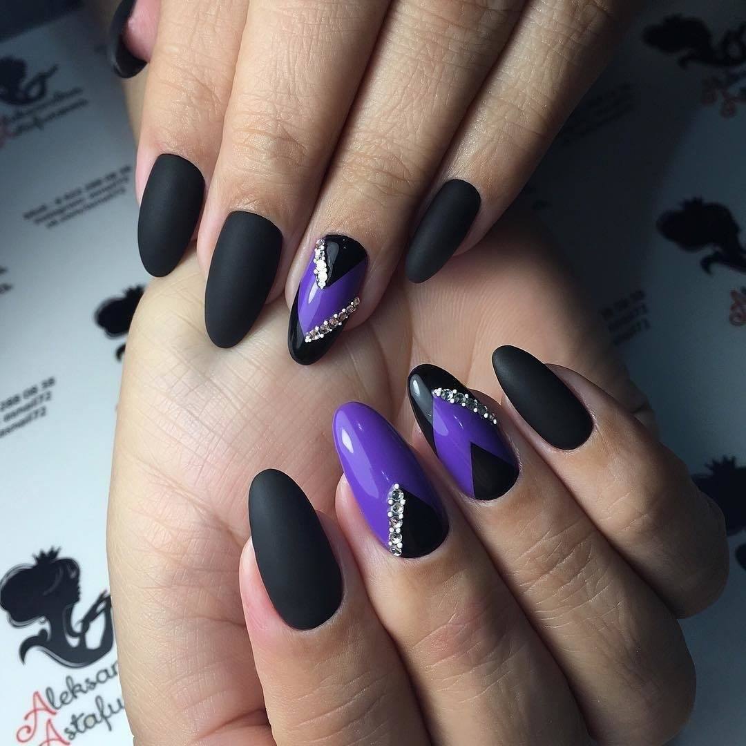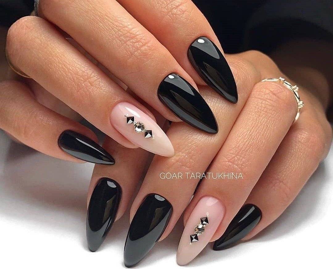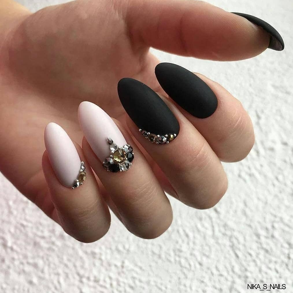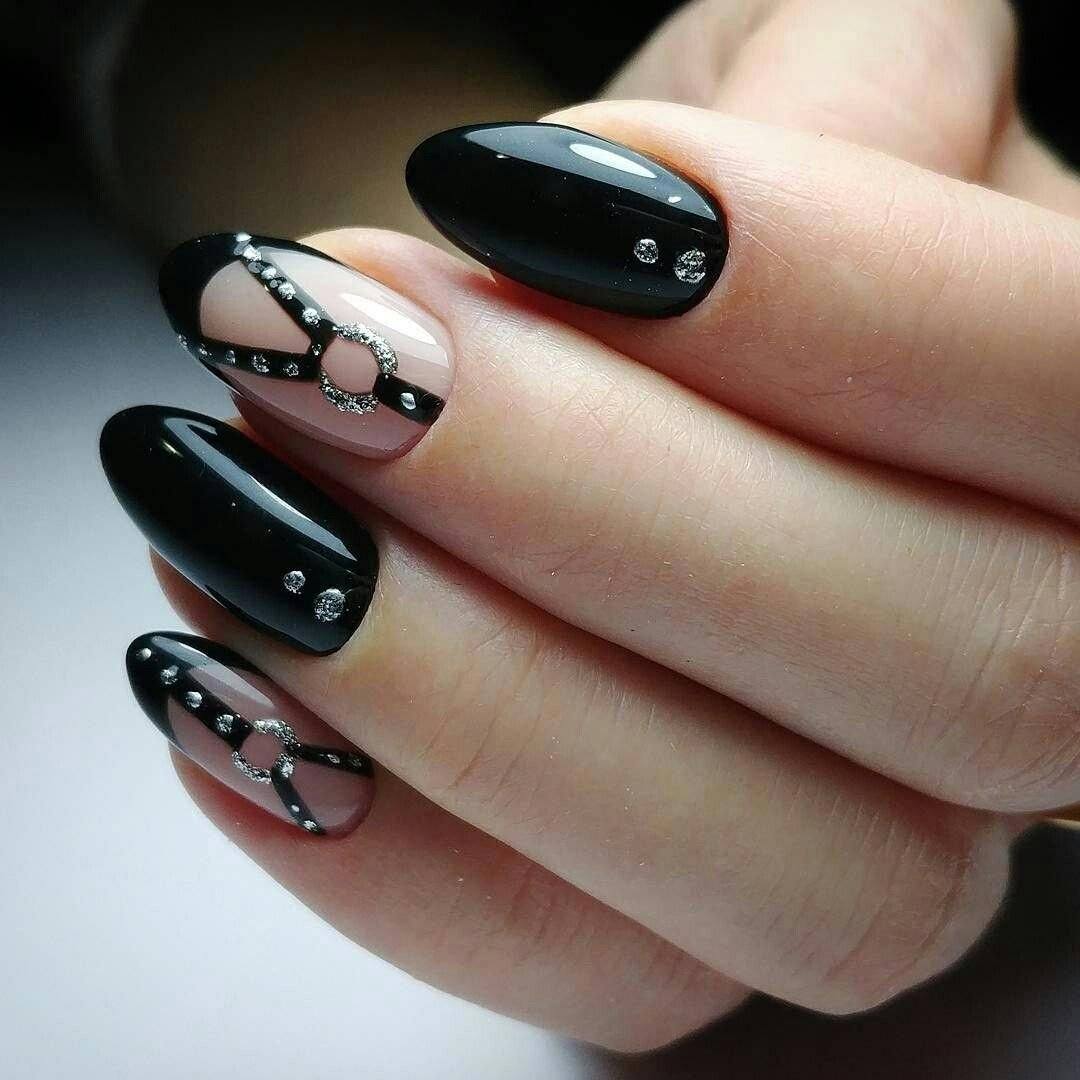 Маникюр черные ногти со стразами 2020: эффектный дизайн на каждый день