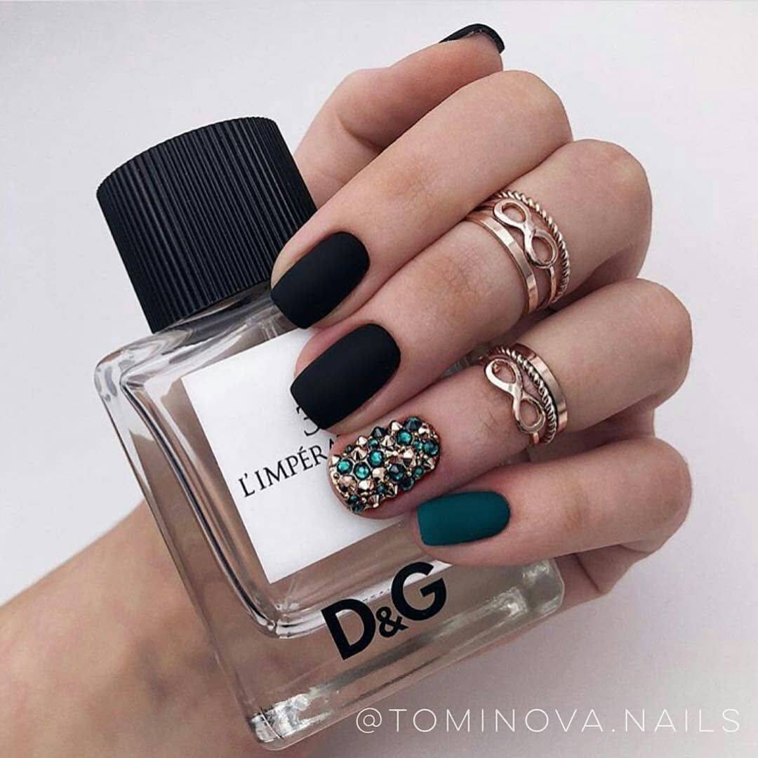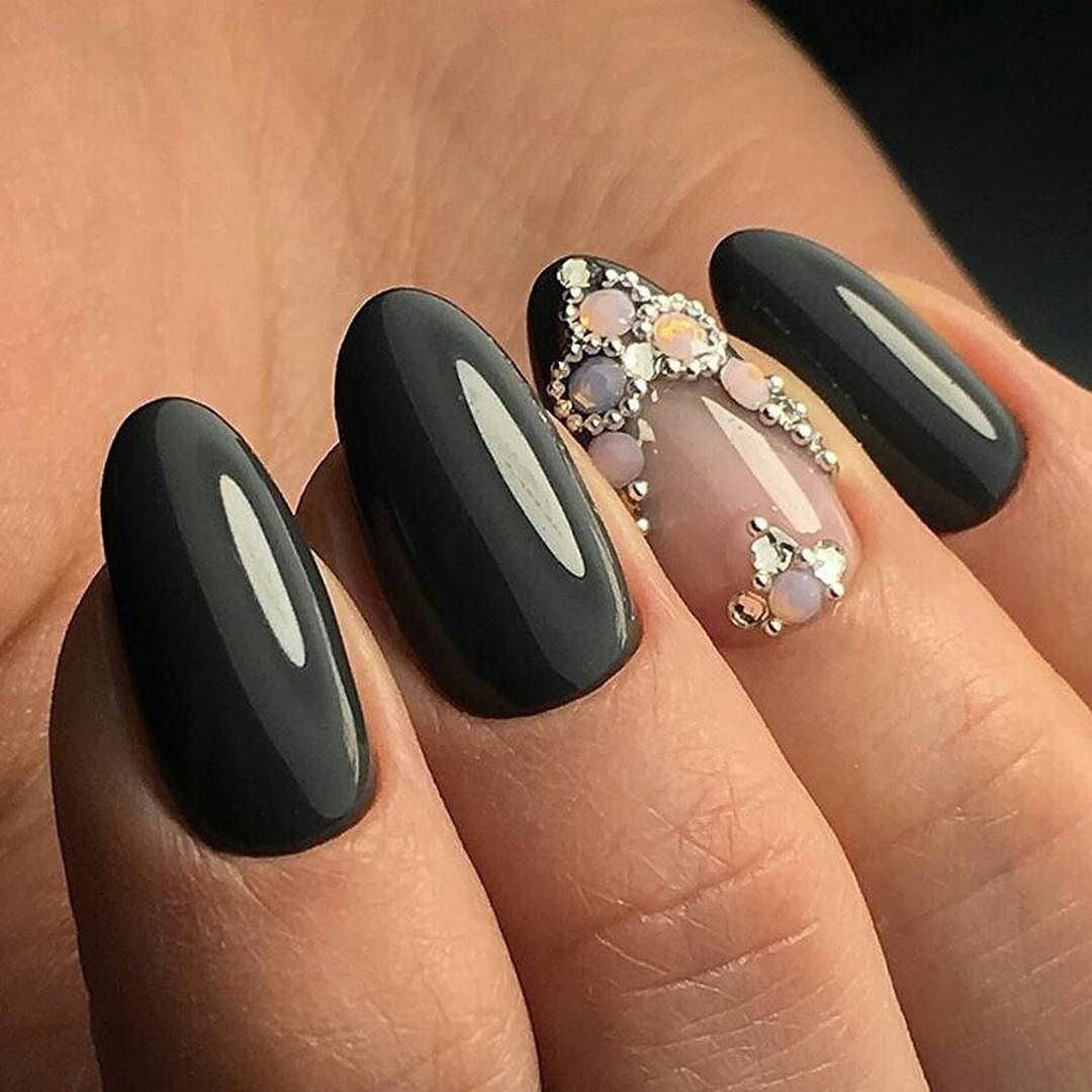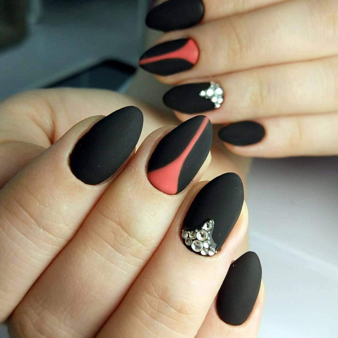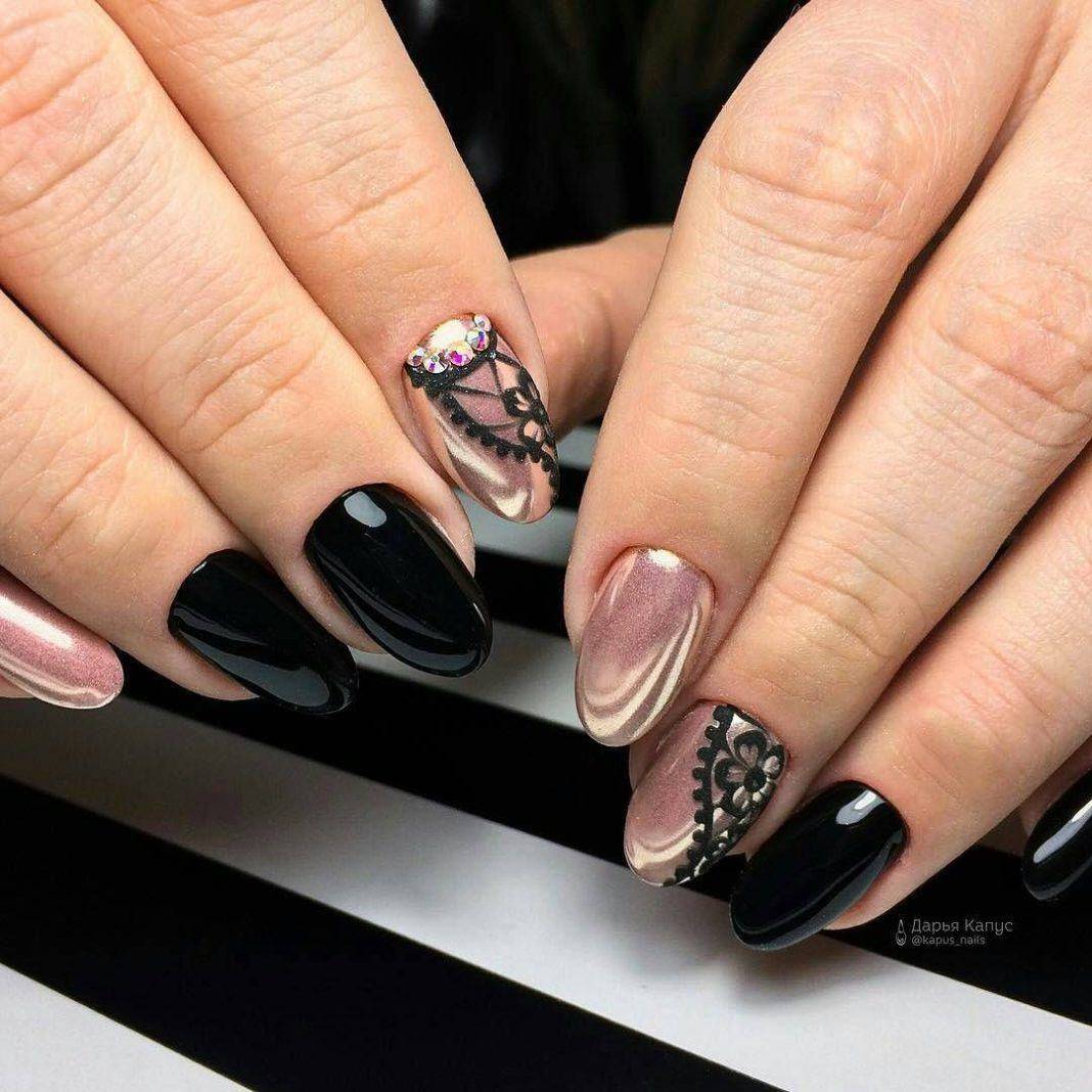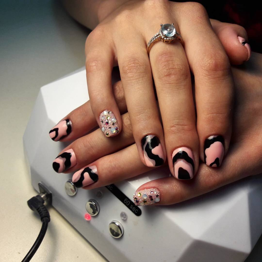 Маникюр черные ногти со стразами 2020: эффектный дизайн на каждый день