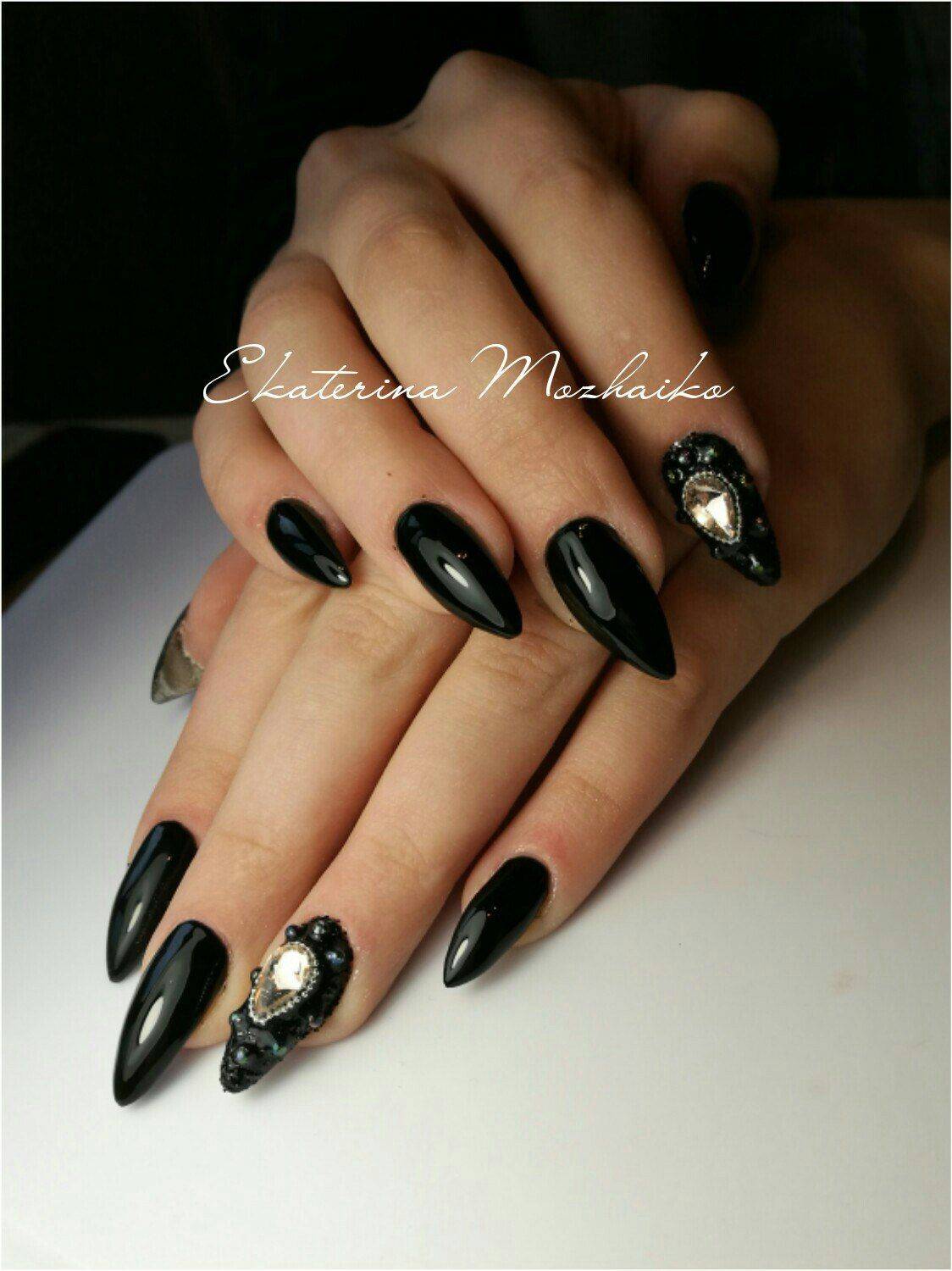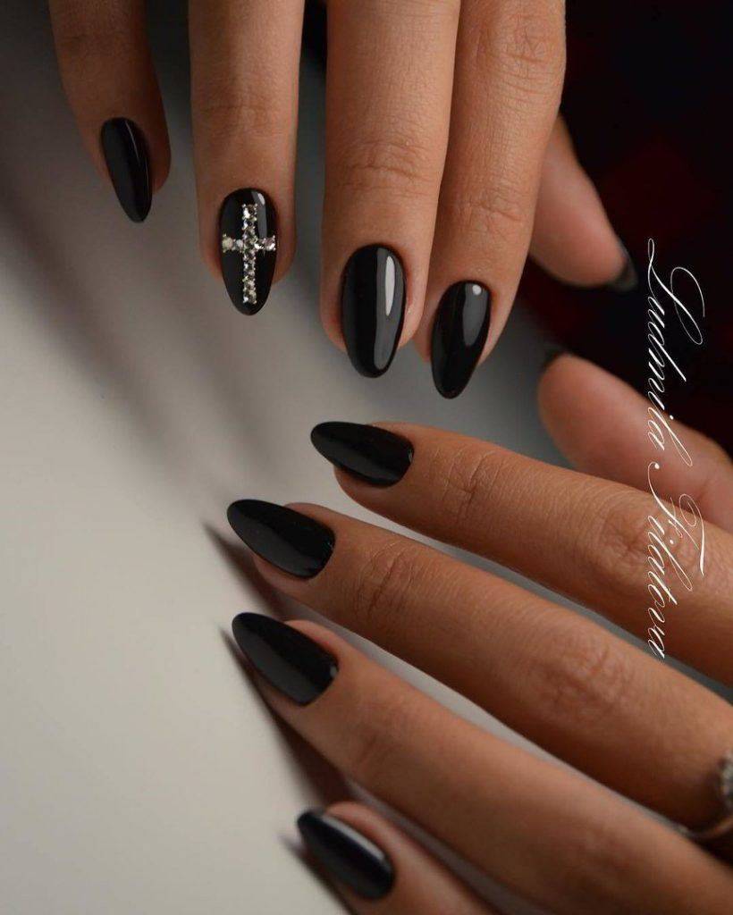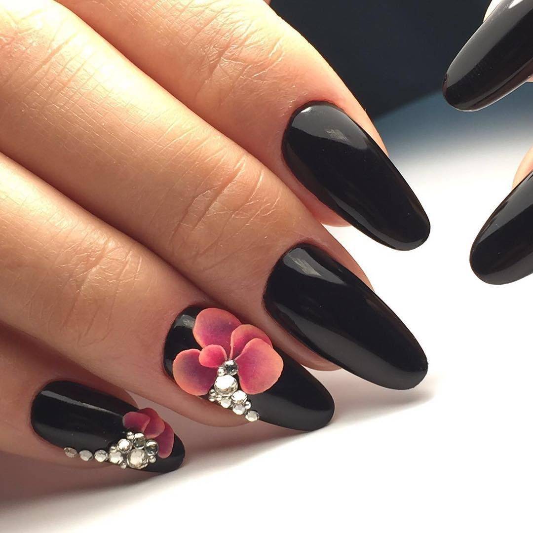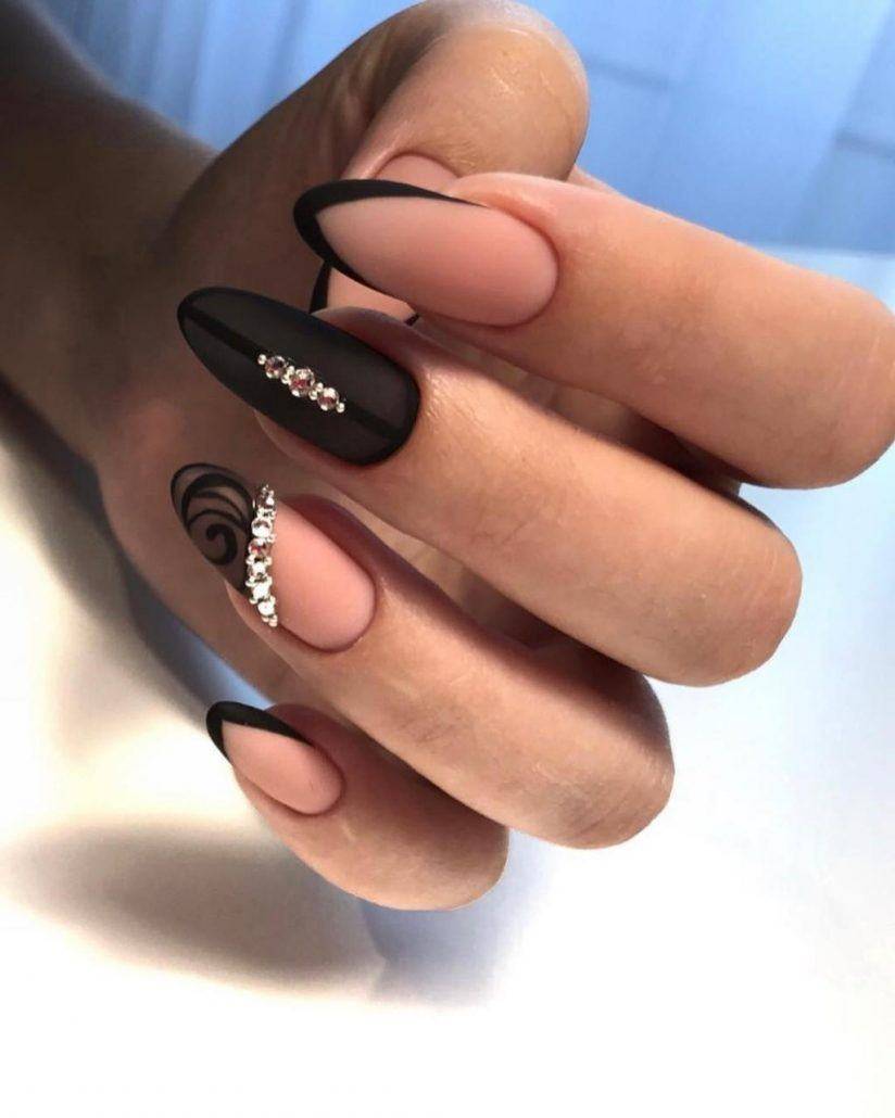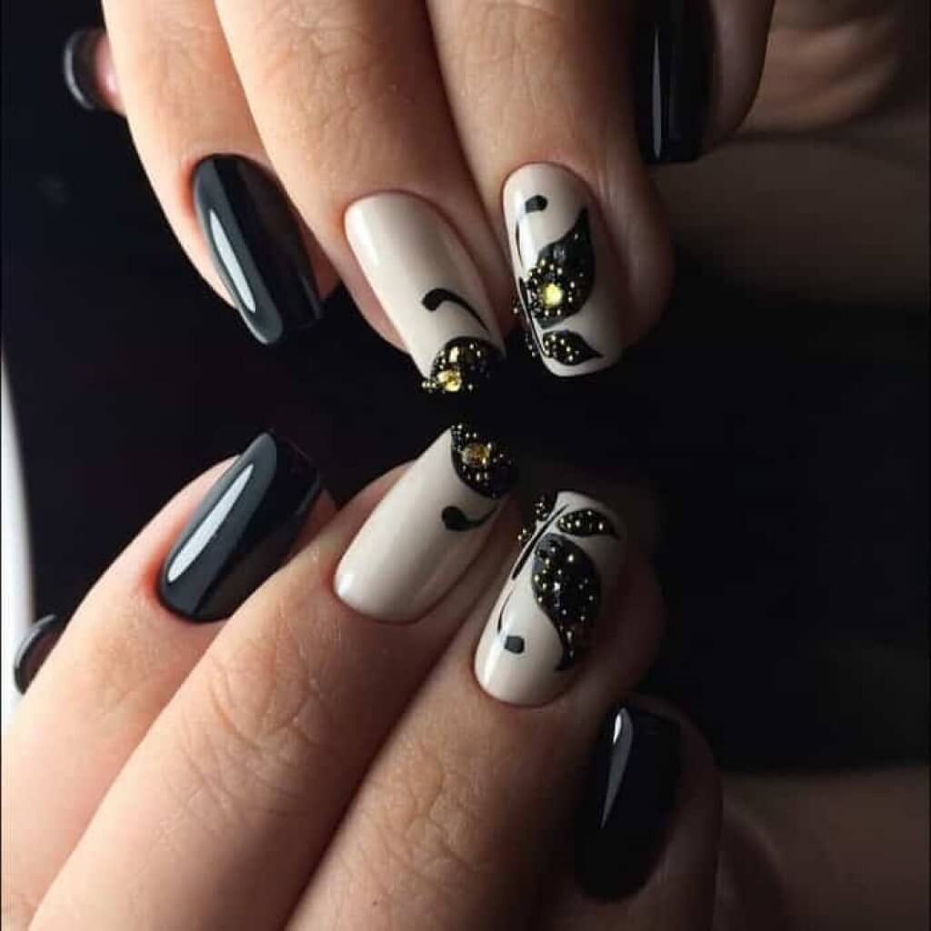 Маникюр черные ногти со стразами 2020: эффектный дизайн на каждый день
