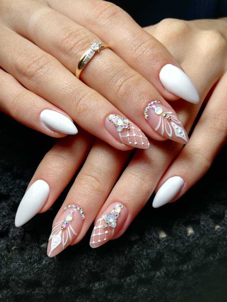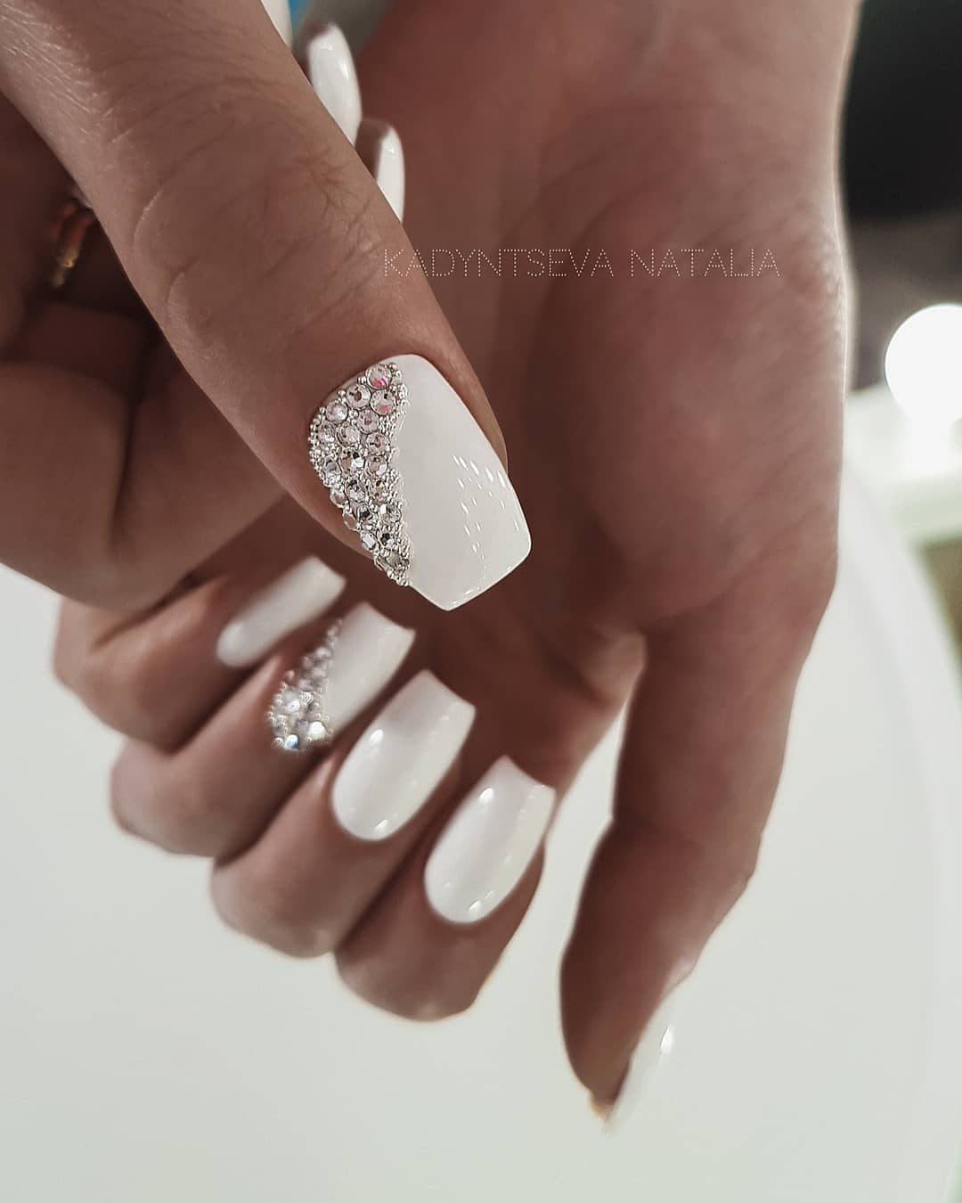 Если вы невеста, маникюр в белых тонах будет идеально подходить под шикарное белое платье.