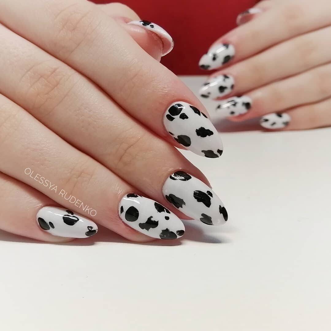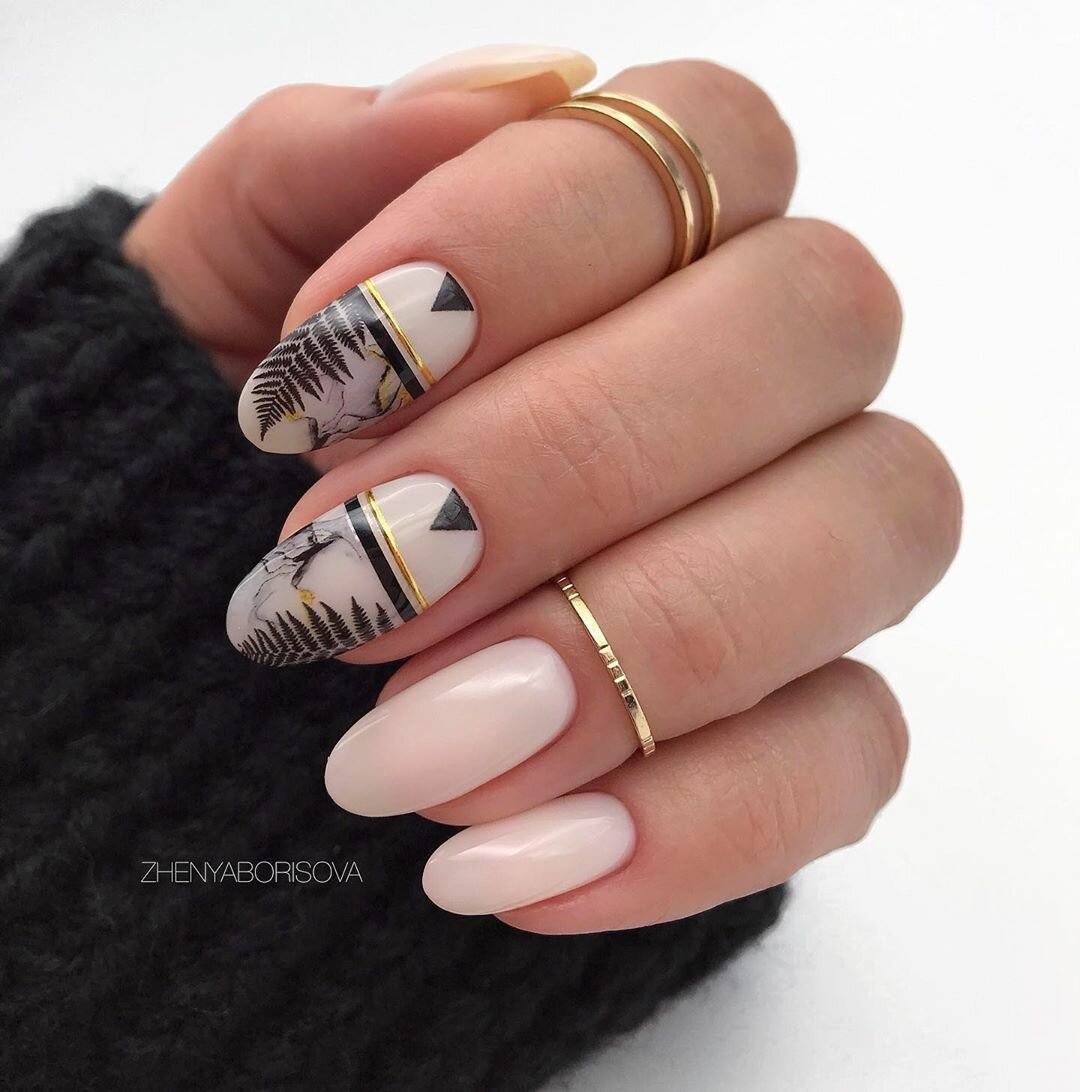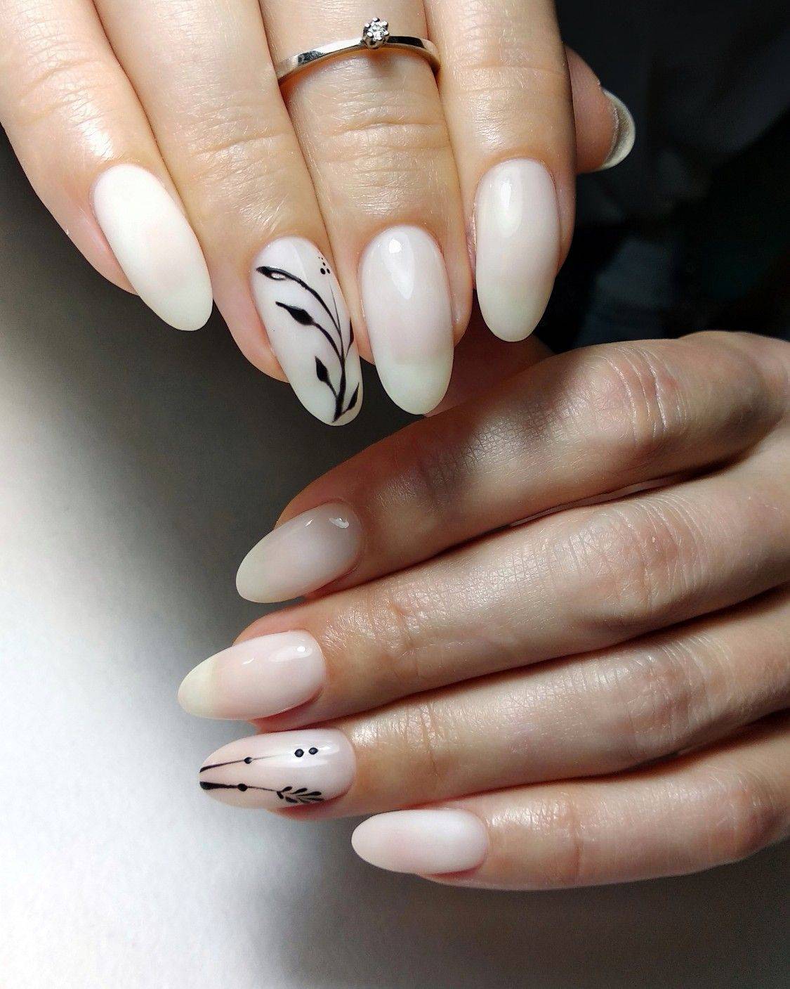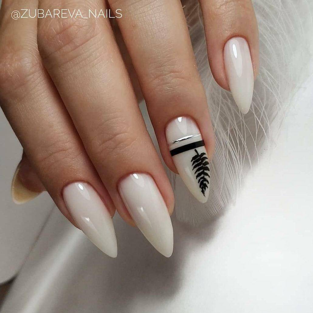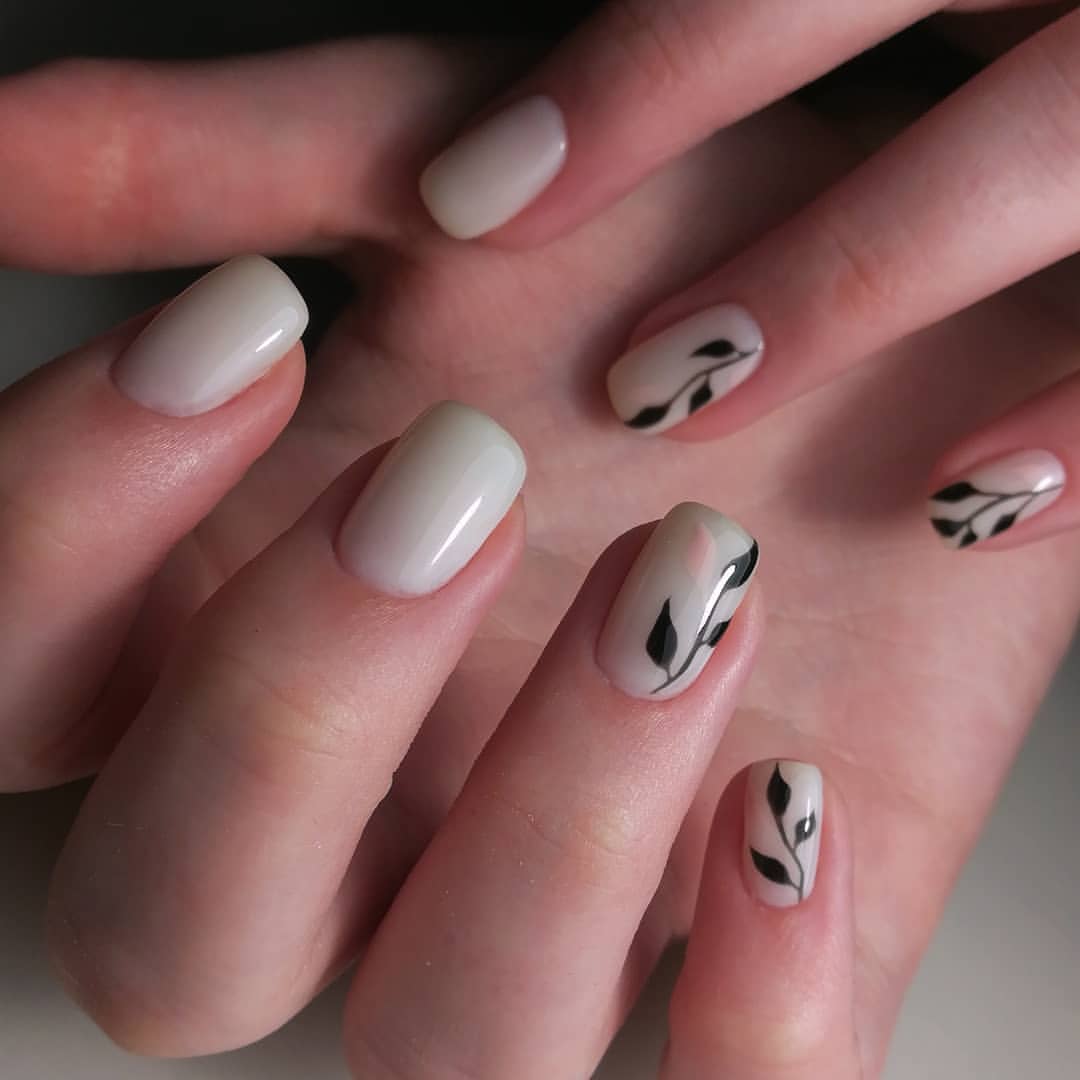 Белый цвет – лучший компаньон черному оттенку. Эти два противоположных цвета смотрятся в одном нейл-арте невероятно гармонично и стильно. В ахроматических тонах можно создать десятки интересных, визуально объемных нейл-артов. В черно-белом цвете выполняется геометрический дизайн, френч и лунный маникюр. В черном цвете можно создать даже дизайн с флористикой.