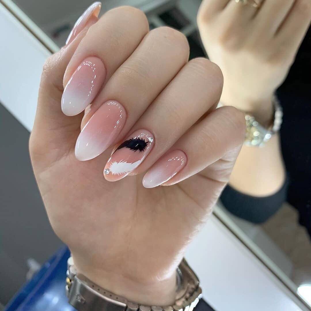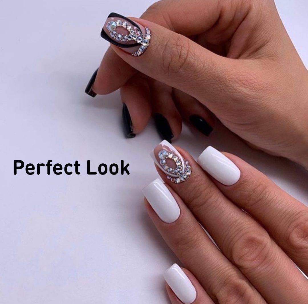 В черно-белом маникюре стразы располагаются в зависимости от выбранной техники. Если это френч, то стразы можно расположить по краю ногтя, обрамить ими “улыбку” френча. В градиентном маникюре стразы обычно располагают в прикорневой зоне, чтобы не закрывать плавный переход оттенков.