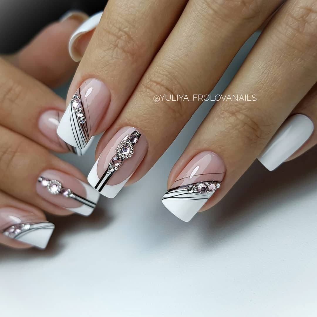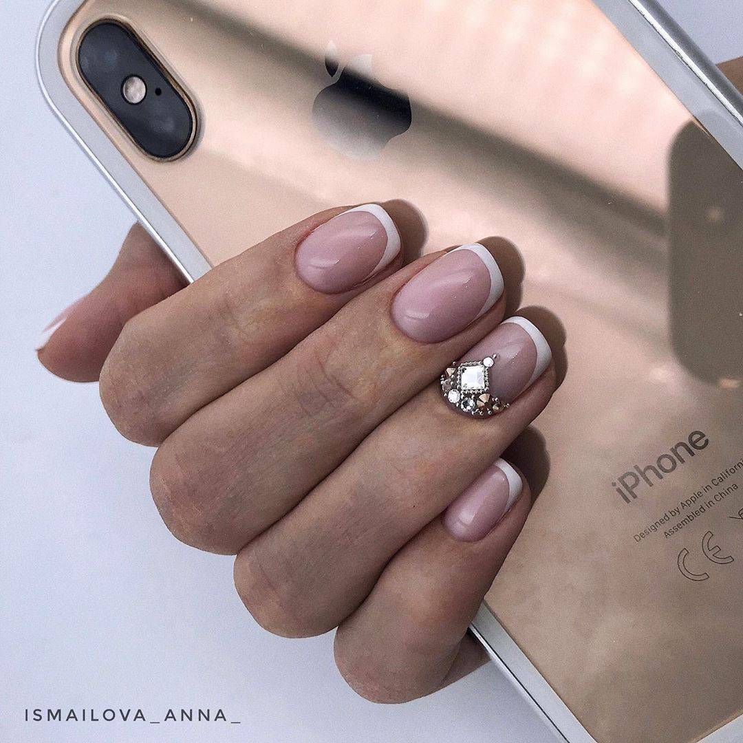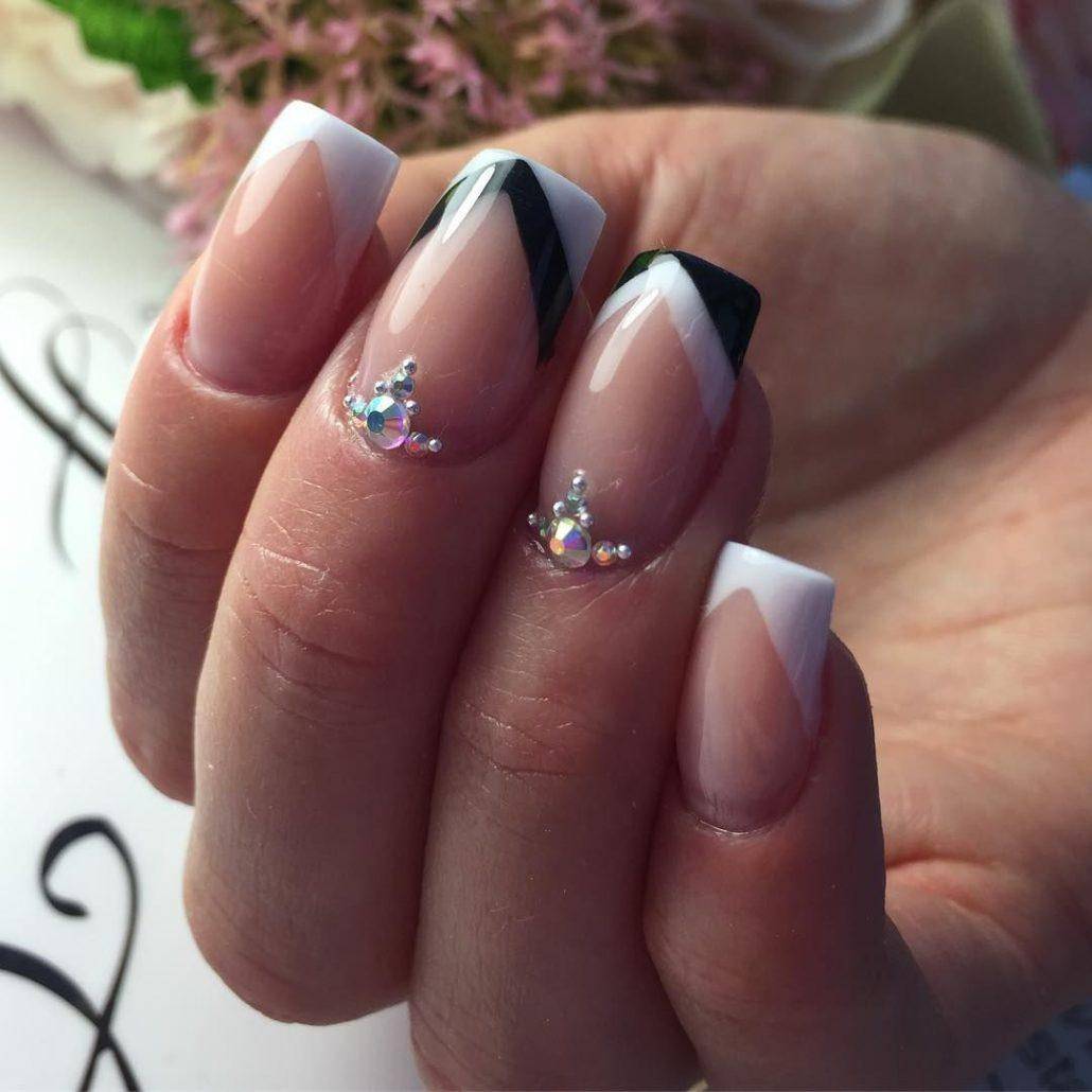 Сезонные идеи французского маникюра со стразами на 2019 год