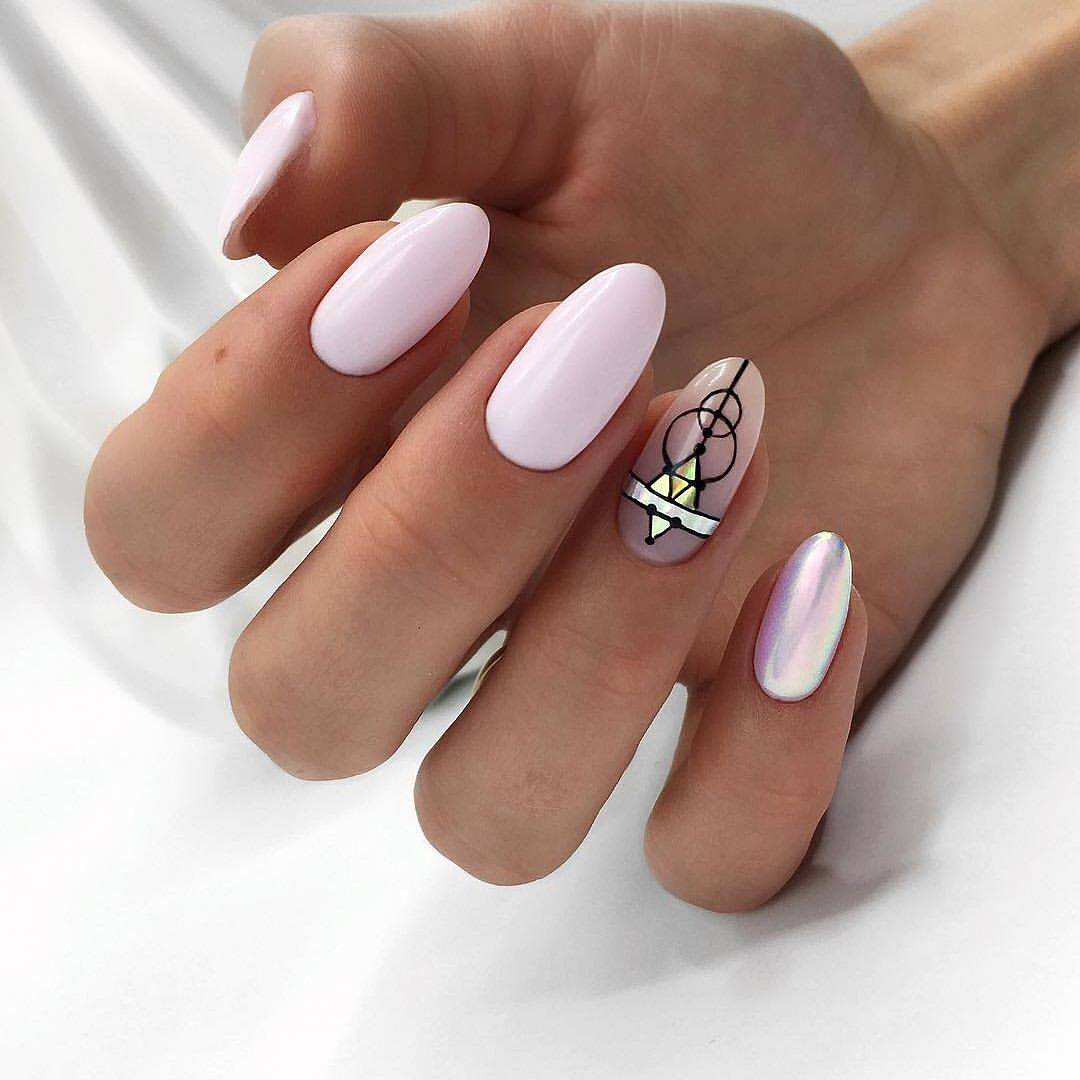 Полоски на ноготочках в любом исполнении выглядят утонченно и эффектно, а вот если вы пожелаете свежий и чудесный дизайн с полосками на ногтях в замысловатом решении, тогда маникюр с полосками «геометрия» именно для вас!