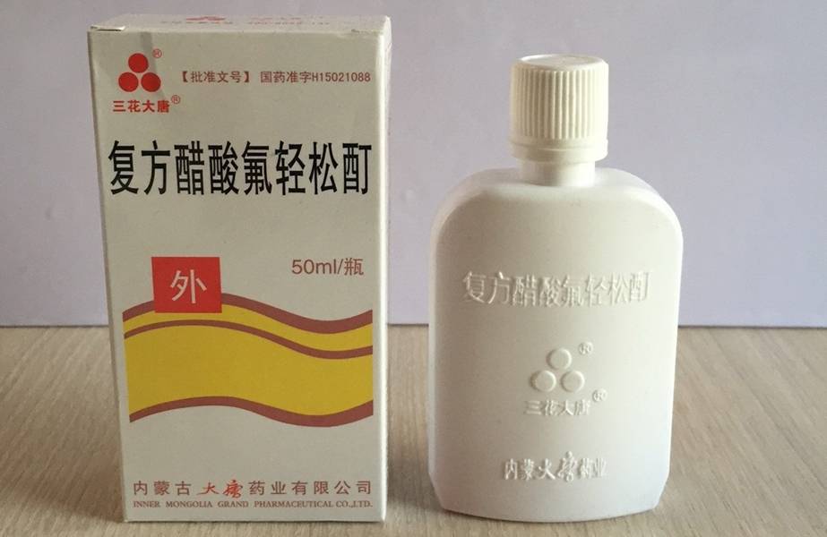 - Флуоцинонид. Является синтетическим гормоном, стимулирующим стероидные рецепторы. Несмотря на то, что многие считают гормональные китайские препараты вредными для организма, флуоцинонид имеет широкий спектр положительных качеств: он может снимать воспаление, успокаивает зуд, устраняет симптомы аллергической реакции, а также препятствует образованию отёков. Он действует на лизосомы таким образом, что выработка веществ, вызывающих воспалительные процессы, значительно сокращается. После нанесения на поражённый участок кожи мазь быстро проникает в организм и в первую очередь содействует снятию воспаления и аллергии. Срок действия вещества довольно длительный, что позволяет пользоваться препаратом более экономно.