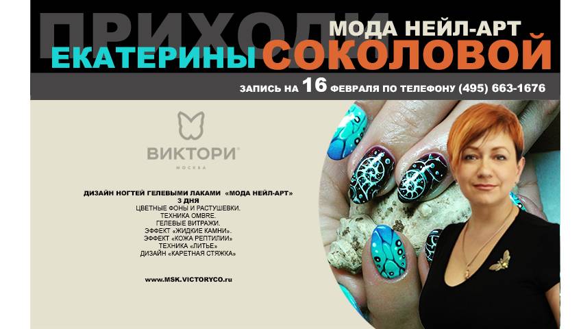 Мы приглашаем мастеров с 16 по 18 февраля на курс “МОДА НЕЙЛ-АРТ”. Курс посвящен дизайну гелевыми лаками. Вместе с ведущим преподавателем нашего Учебного Центра Екатериной Соколовой Вы на практике отработаете самые популярные техники: