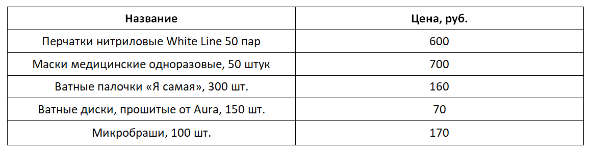 - перчатки нитриловые Можно взять латексные или виниловые – на свое усмотрение. Цена будет примерно одинаковой;