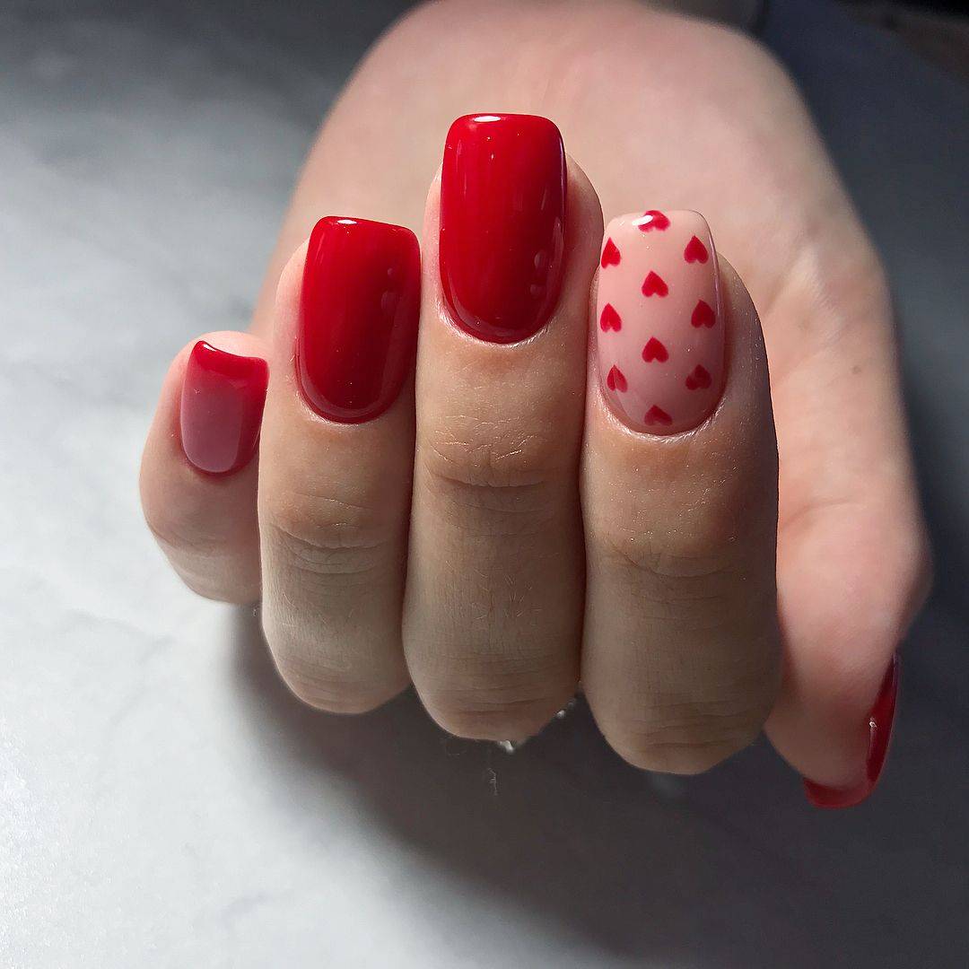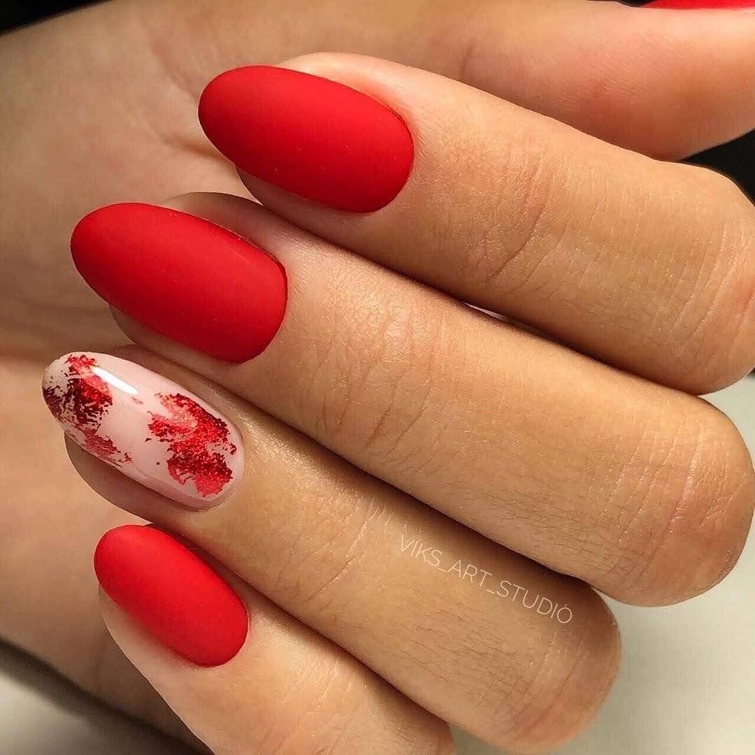Показать красоту и глубину красного цвета помогут однотонные нейл-арты. Для такого дизайна можно использовать насыщенные оттенки красного, например, вишневый, гранатовый, бордо и другие