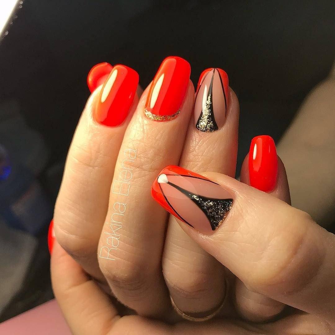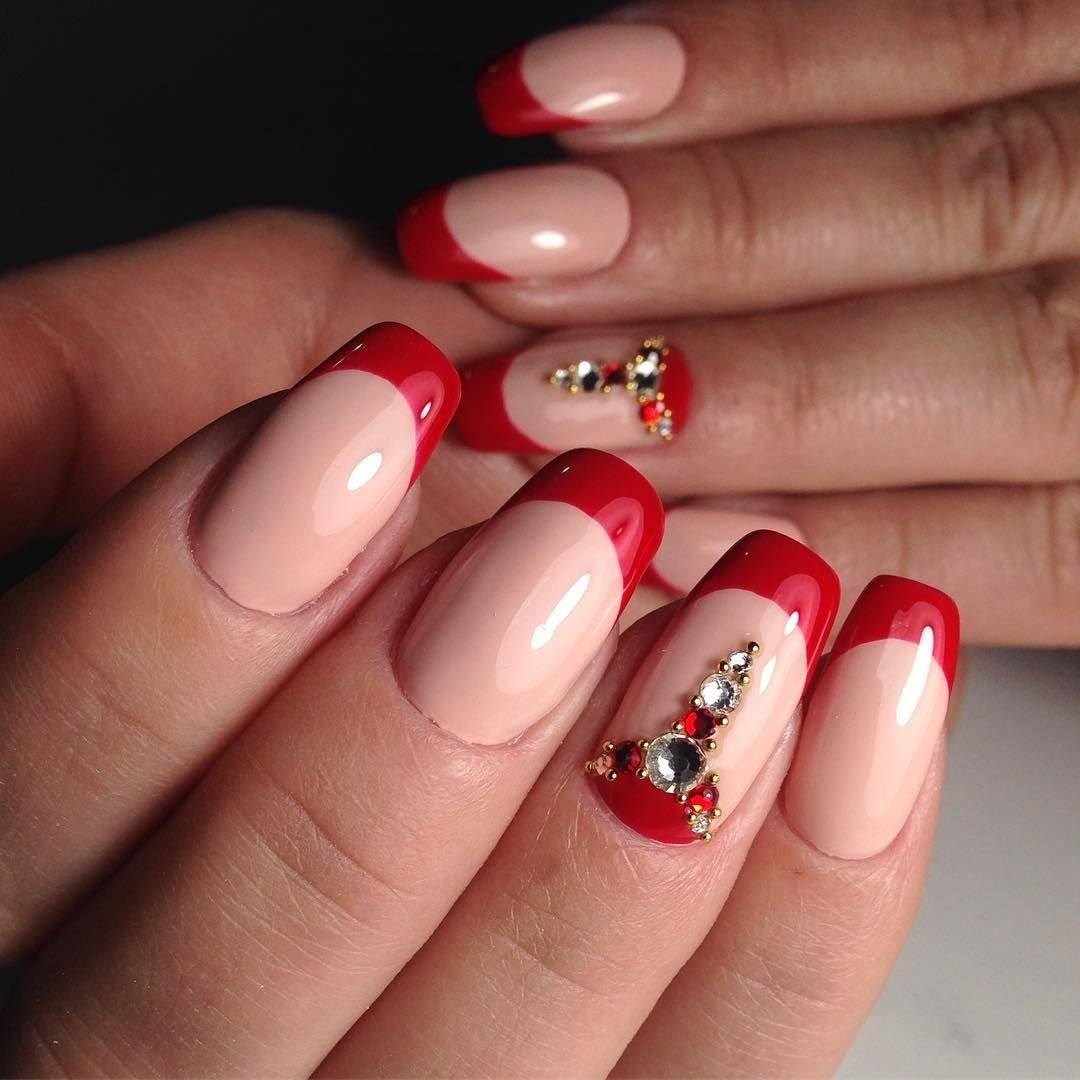 • используемые средства декорирования должны быть от небольших до и вовсе миниатюрных по размеру;• сюжетный рисунок – четкий, с некоторым отступом от границ ногтевой поверхности или абстрактный на всю поверхность;• при комбинировании с другими колерами (к примеру, в геометрическом рисунке) дополнительно использовать сочетание не более трёх красок;• для придания образу сезонных признаков достаточно к красному добавить доминирующие краски времени года или рисунок на одно-двух акцентных ноготках.• для особых, торжественных случаев красный фон декорируется мелкими жемчужинами, хрустальной крошкой, сверкающими камешками, стразами или блестками.