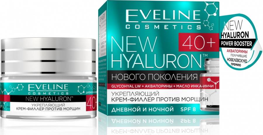 Eveline Cosmetics предлагает хороший крем от морщин после 40 с действием филлера. Средство используют перед сном или в качестве базы под макияж. Консистенция похожа на суфле, крем легко распределяется. После регулярного применения отмечают разглаживание мимических морщин, увлажнение, улучшение цвета лица.