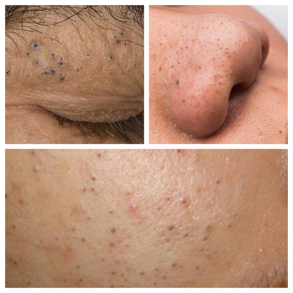 - закрытыми комедонами (белыми угрями или белыми точками).